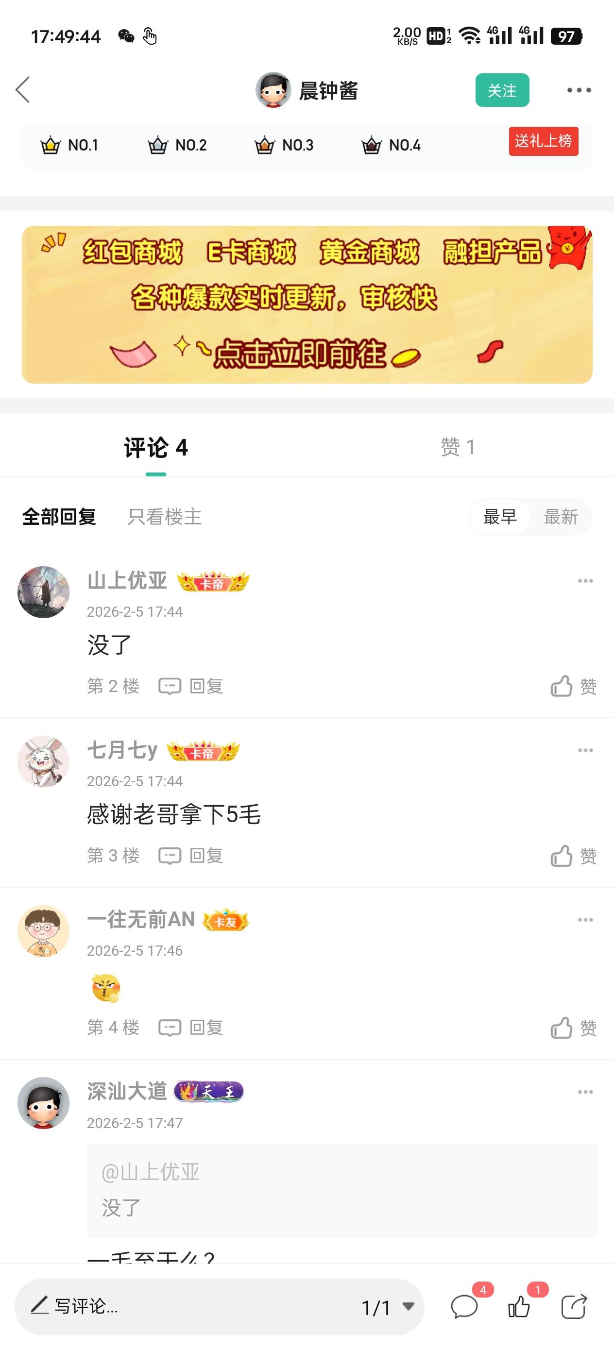 卡农超管 发表于 2026-02-05 17:56 该用户多次评论区发布虚假羊毛信息,已永久封禁,app有缓存可在网页版查看