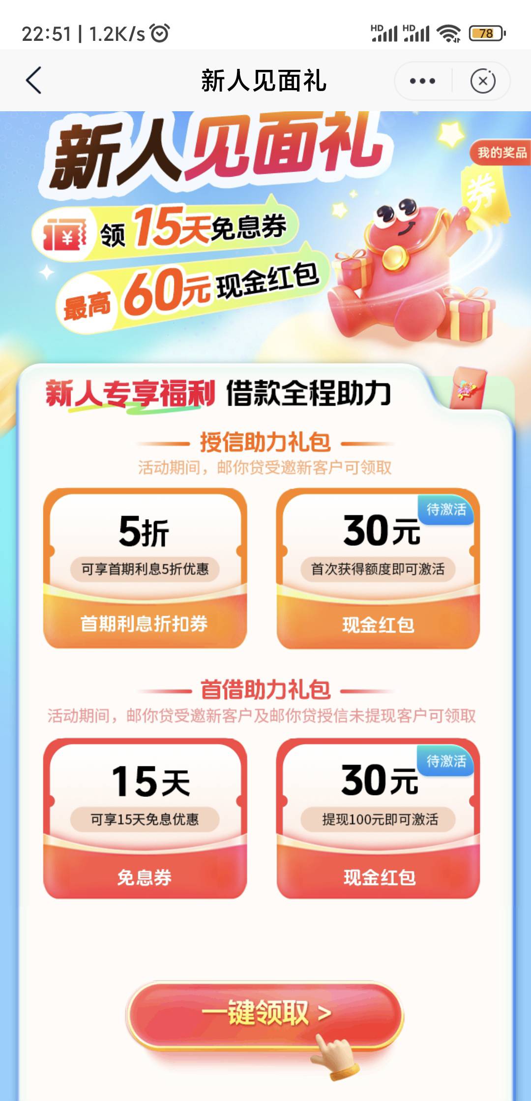 邮储银行开通邮你贷,新人60毛容易过