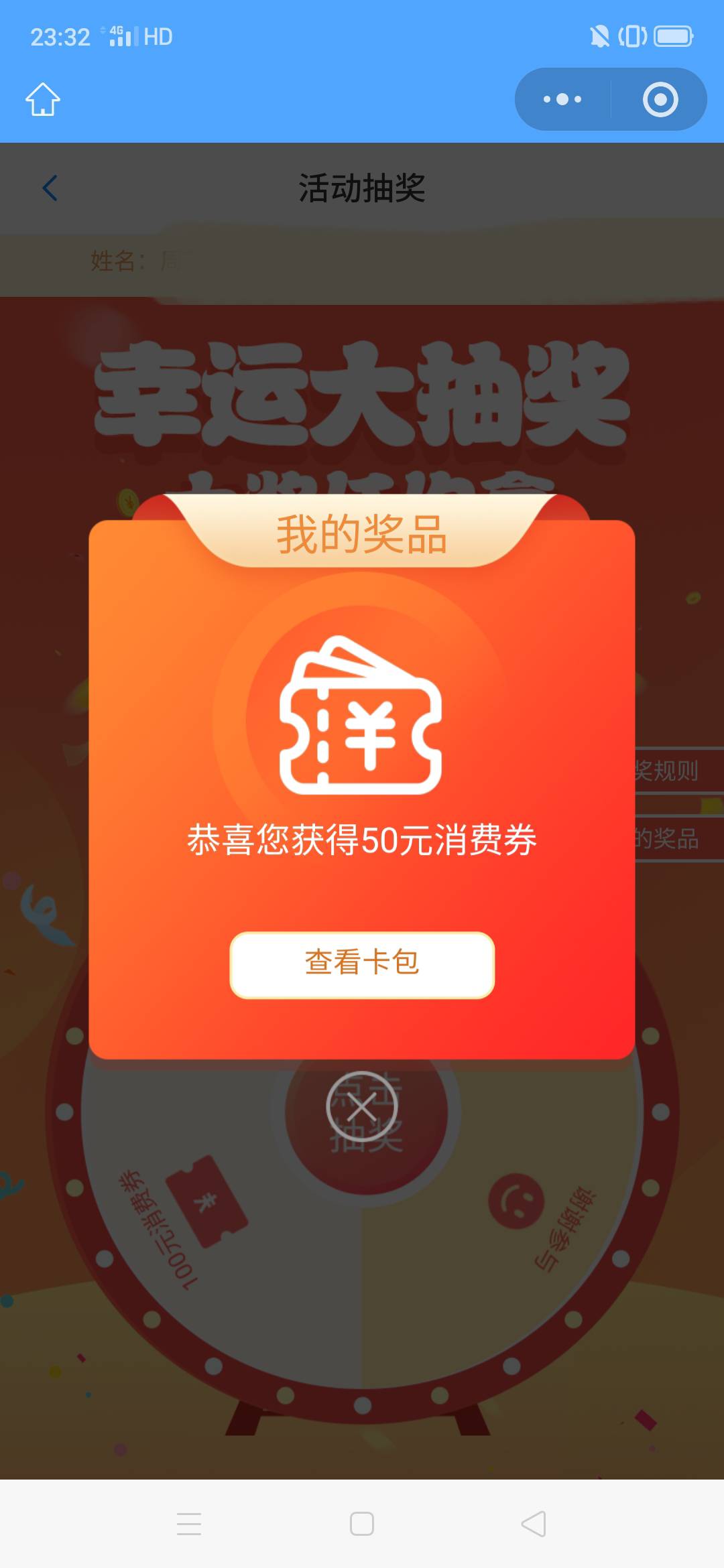 之前有3次机会,用了2次,刚才用的是最后一次,江苏公会的活动就是如此,能中的话,一次机会就行,不能中的话,再多机会也……