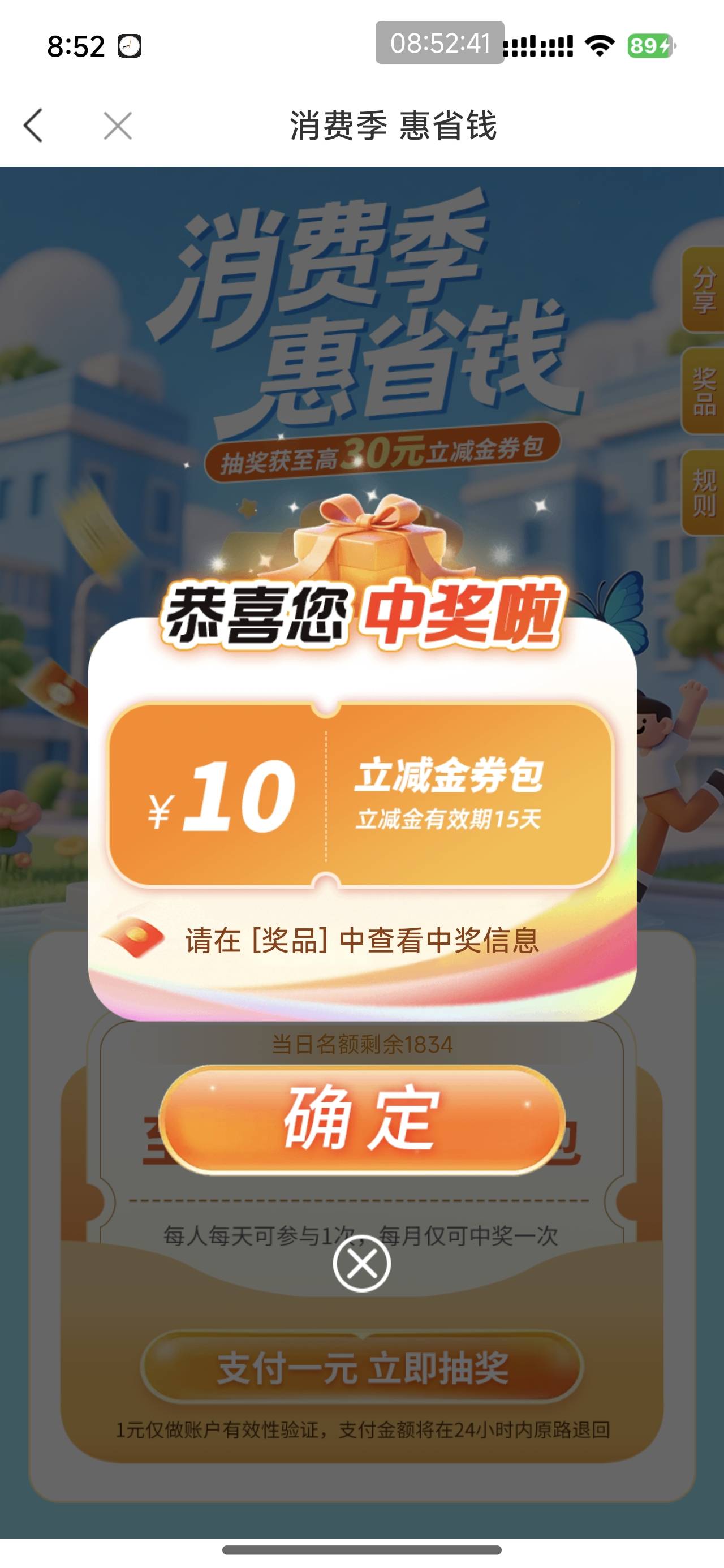 徽商银行消费季惠省钱抽奖活动