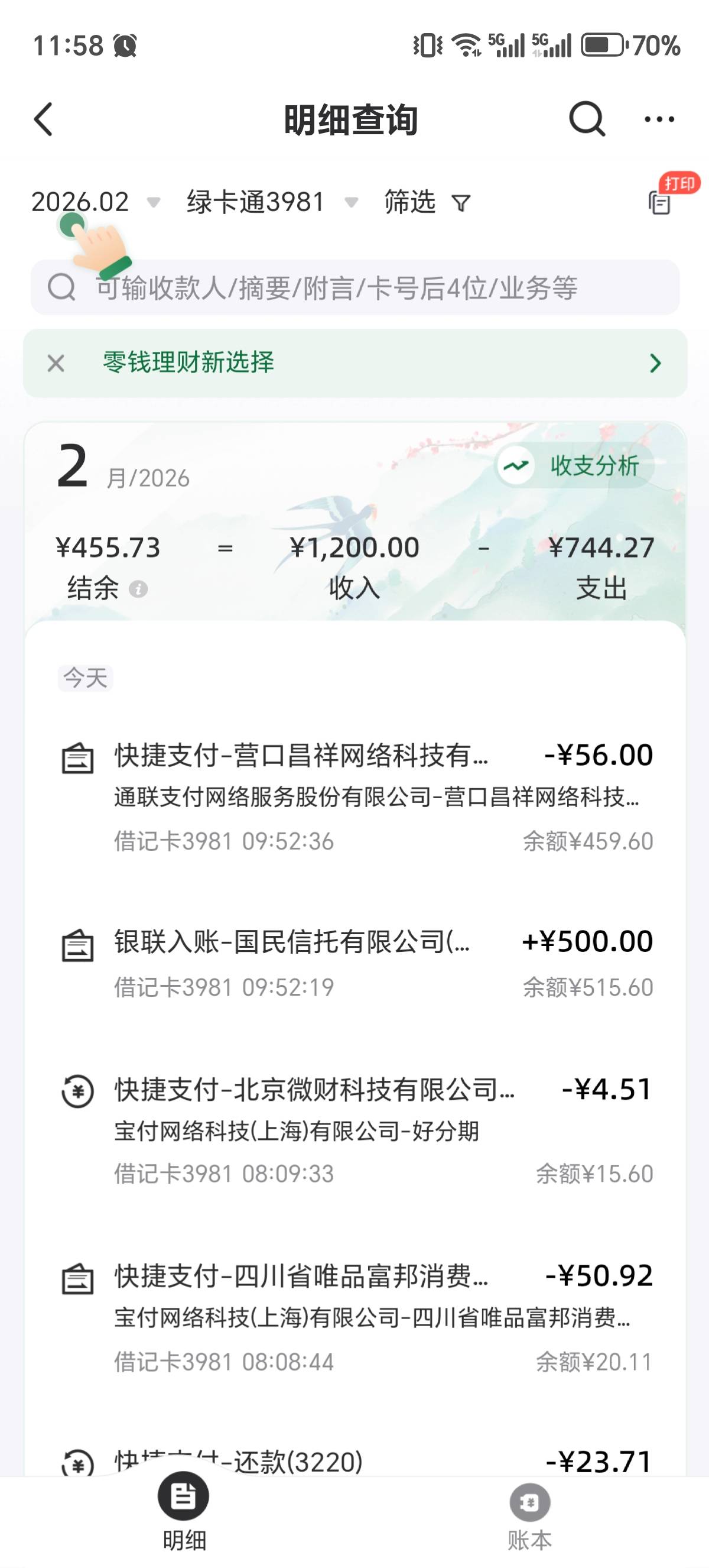 下款了,宜口袋早上本体早上申请1000拒了,过一会来短信说有500额度,申请后开了先用
