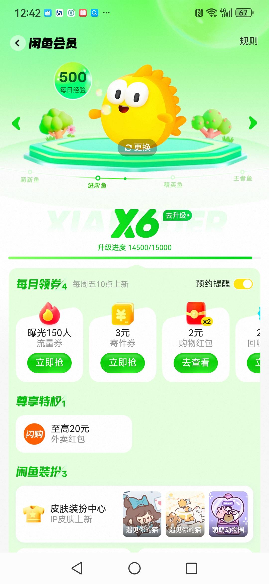 每月周五闲鱼会员等级领红包,不同的等级红包不同。
