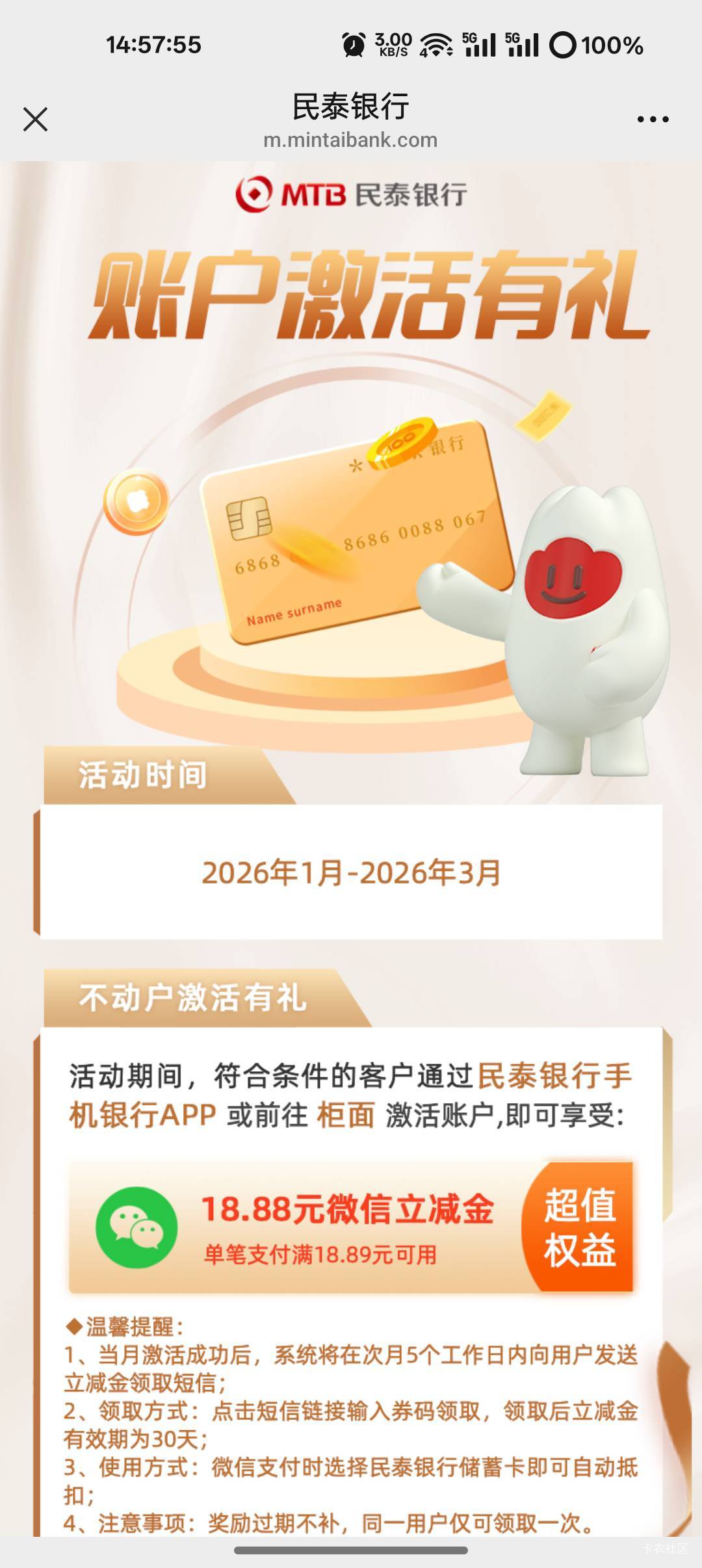 书包有灰尘 发表于 2026-02-06 15:11 这链接打开跳转银行之后不是活动界面啊