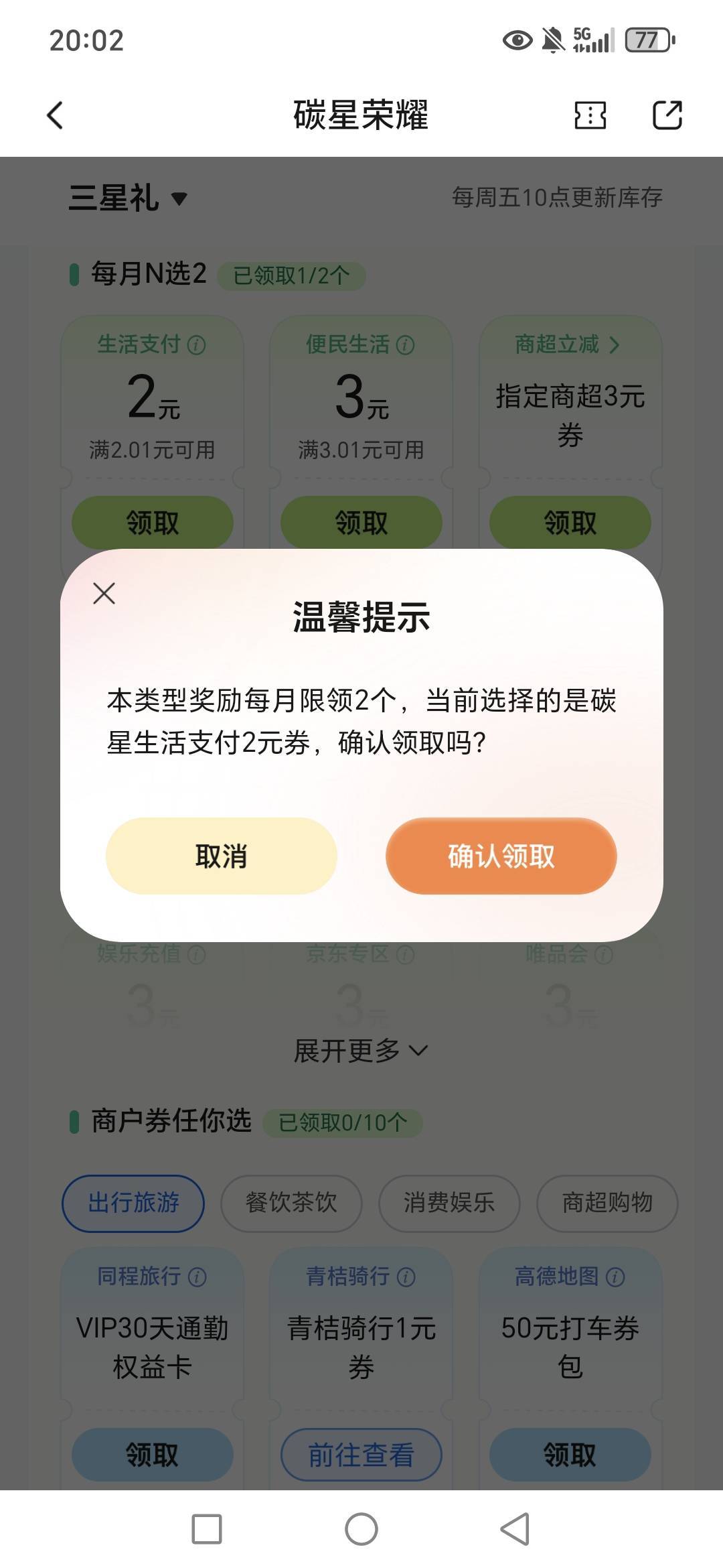 交通银行碳星荣耀完成任务领福利活动