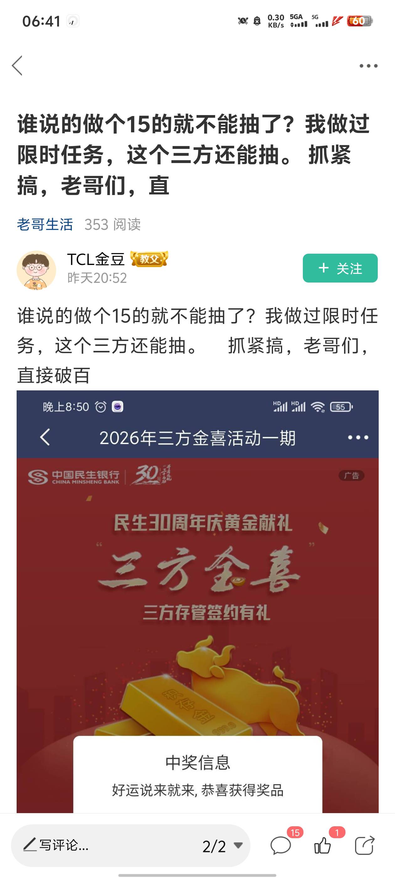 民生存管15去年我也做过,为啥领不了