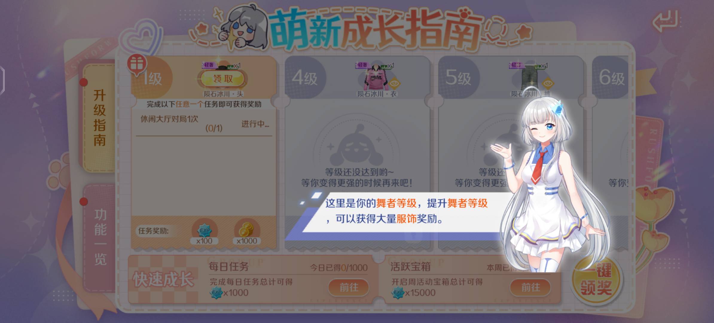 炫舞回归还有,没事玩去吧,进去左边萌新成长直男,跟着走,10几分钟的事