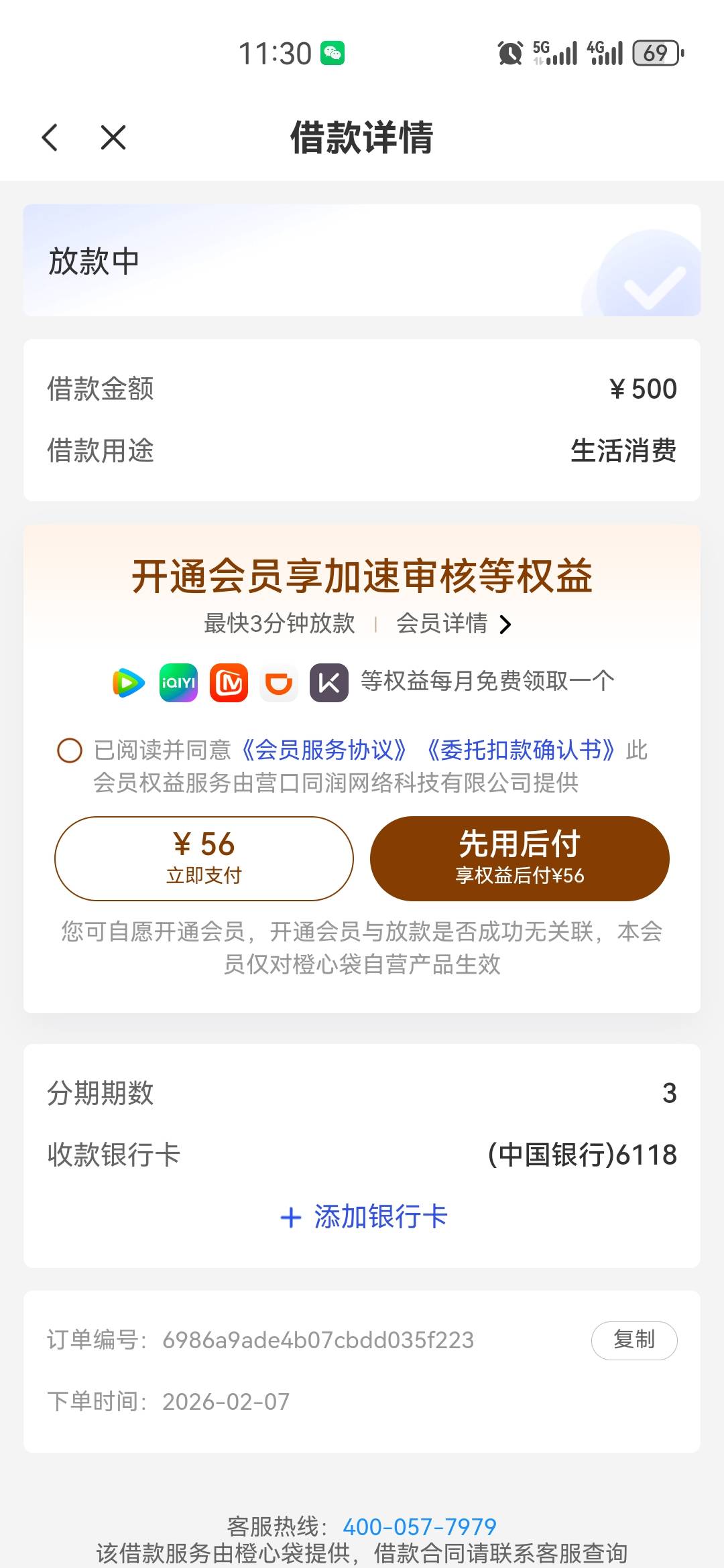 已经点了先用后付一个小时了,还是放款中,这个会不会被拒?
