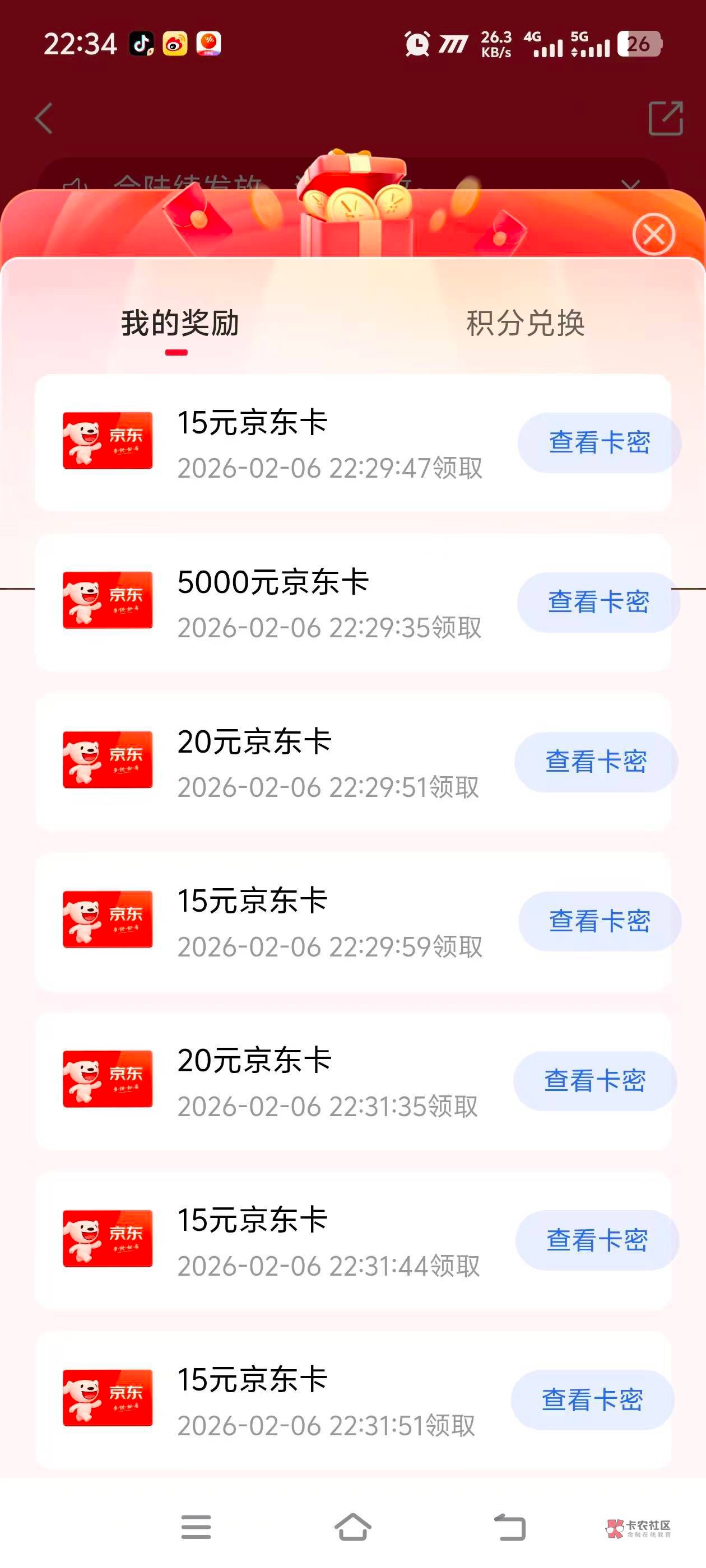昨天晚上就领了。