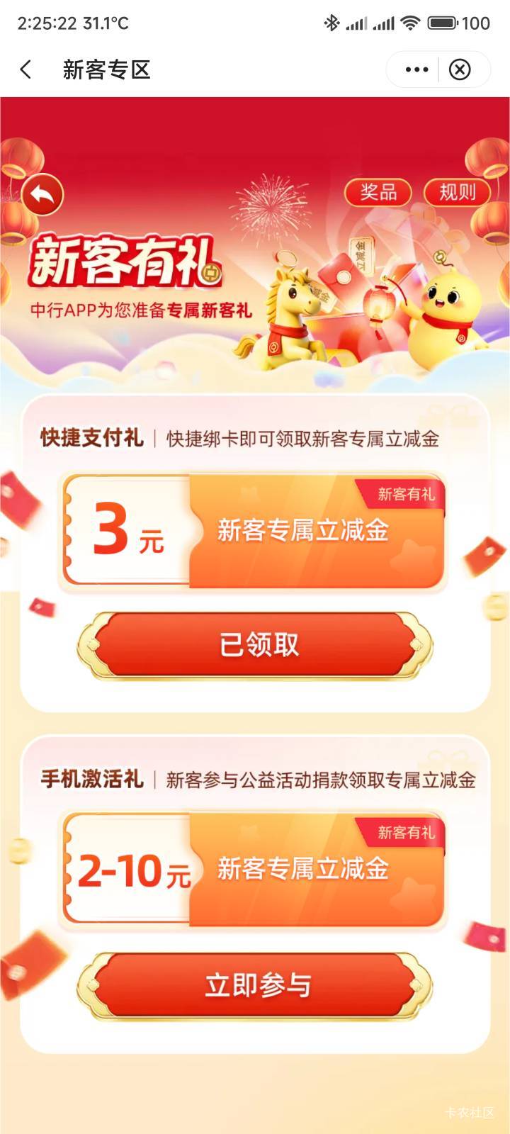 中行河北新客快捷支付礼+乡村振兴捐款活动