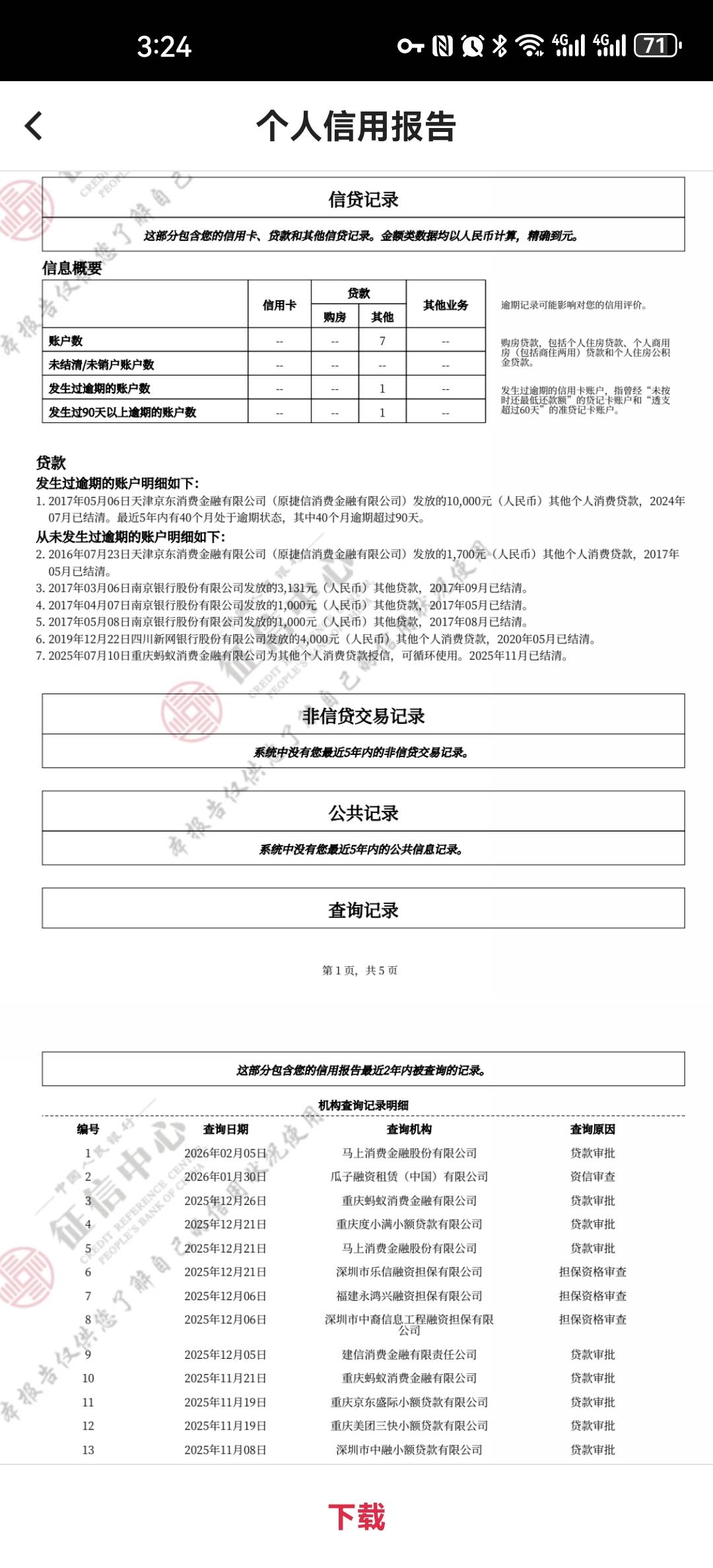 我这个征信是不是不太好。啥都不下。捷信我都没有还 怎么就结清了。