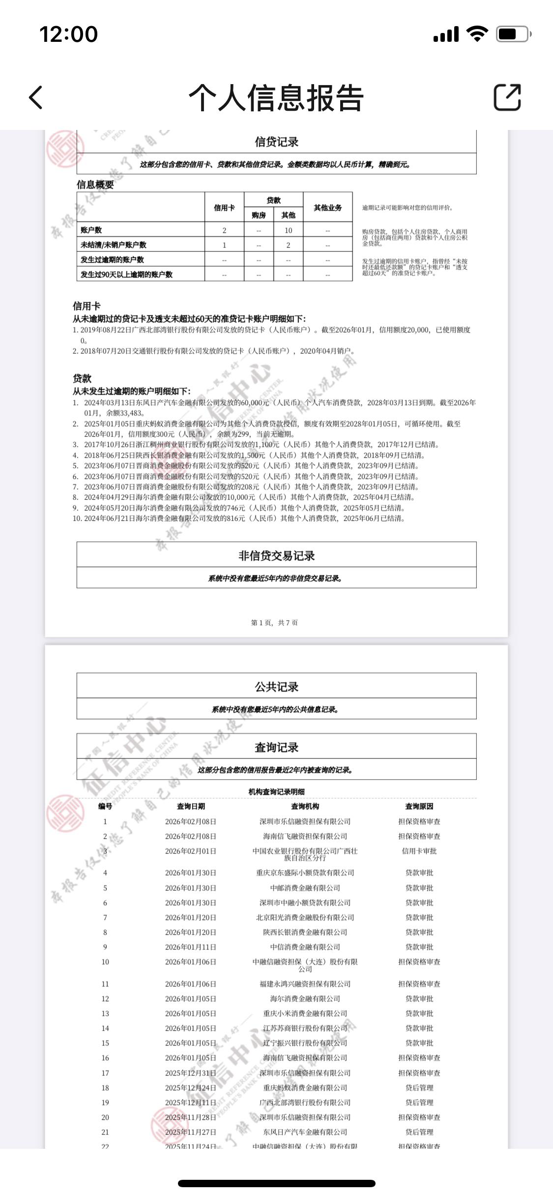 7页征信6页查询……