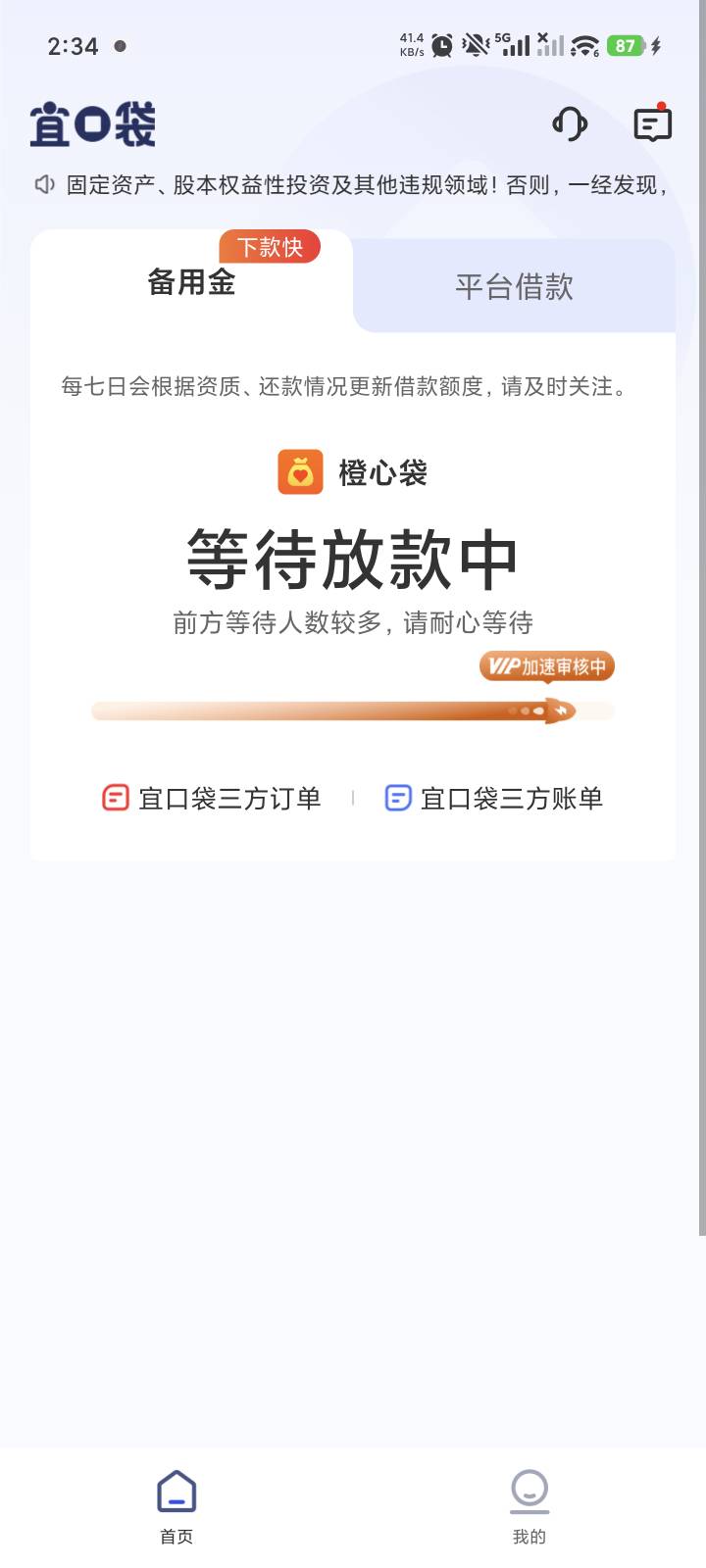 橙心袋等待放款 稳吗