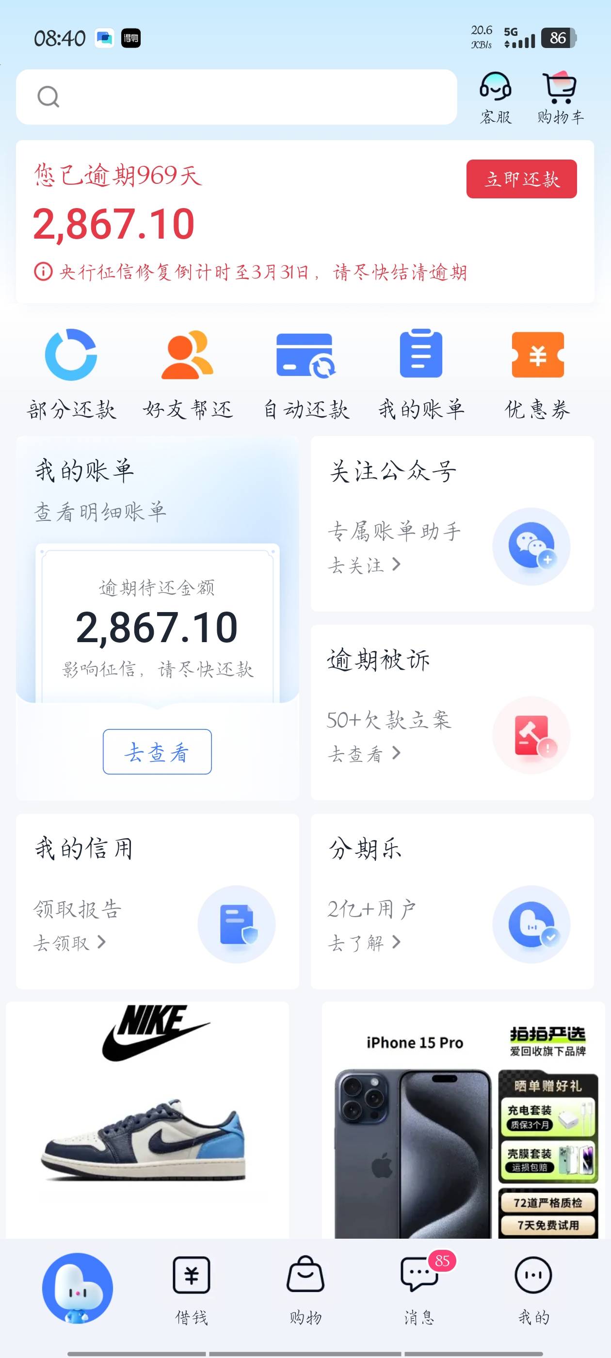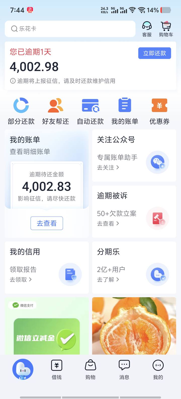 分期乐,有老哥说逾期几天会自动出专项,我没有借款额度,只有购物,这种会出吗