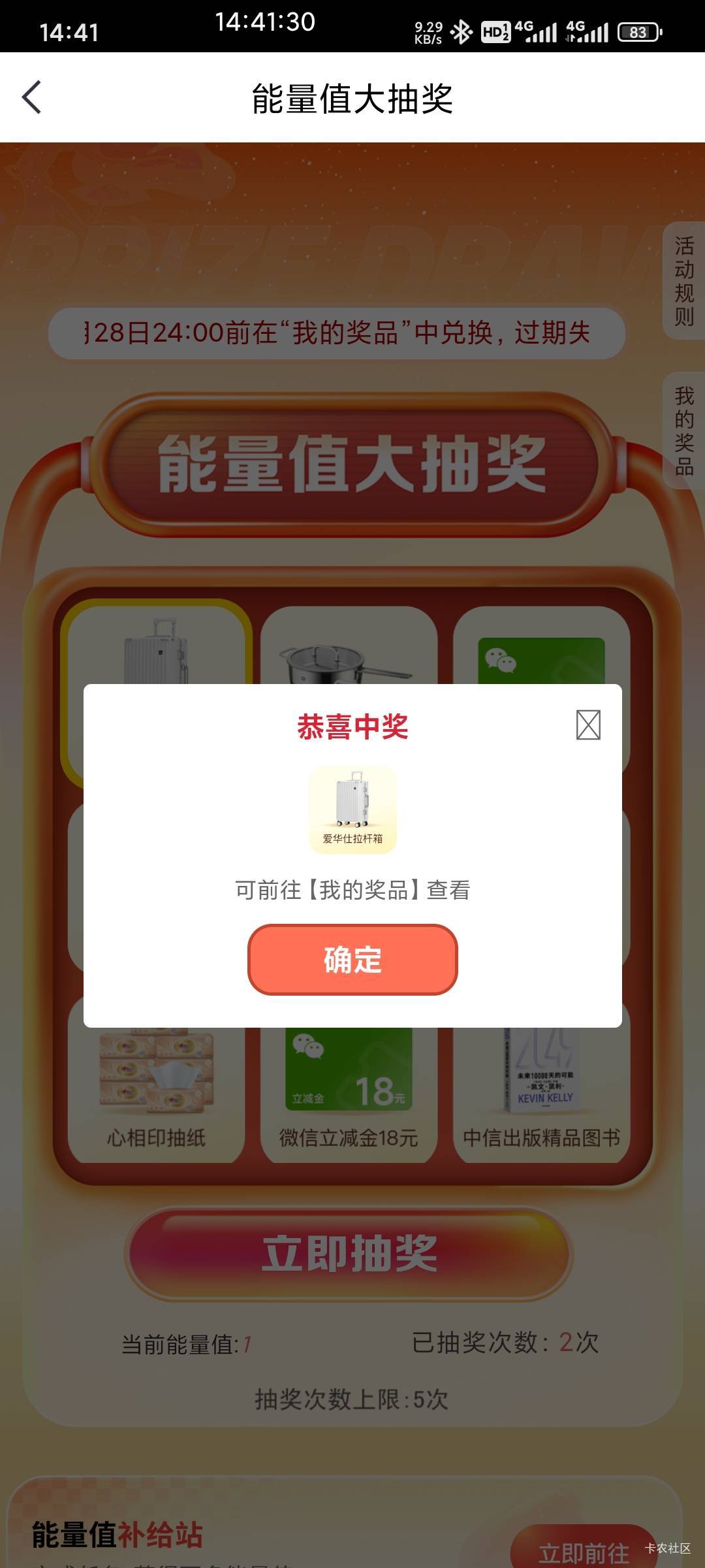 中信银行能量抽奖还有,中了个箱子,老哥们这个拉杆箱值多少米?