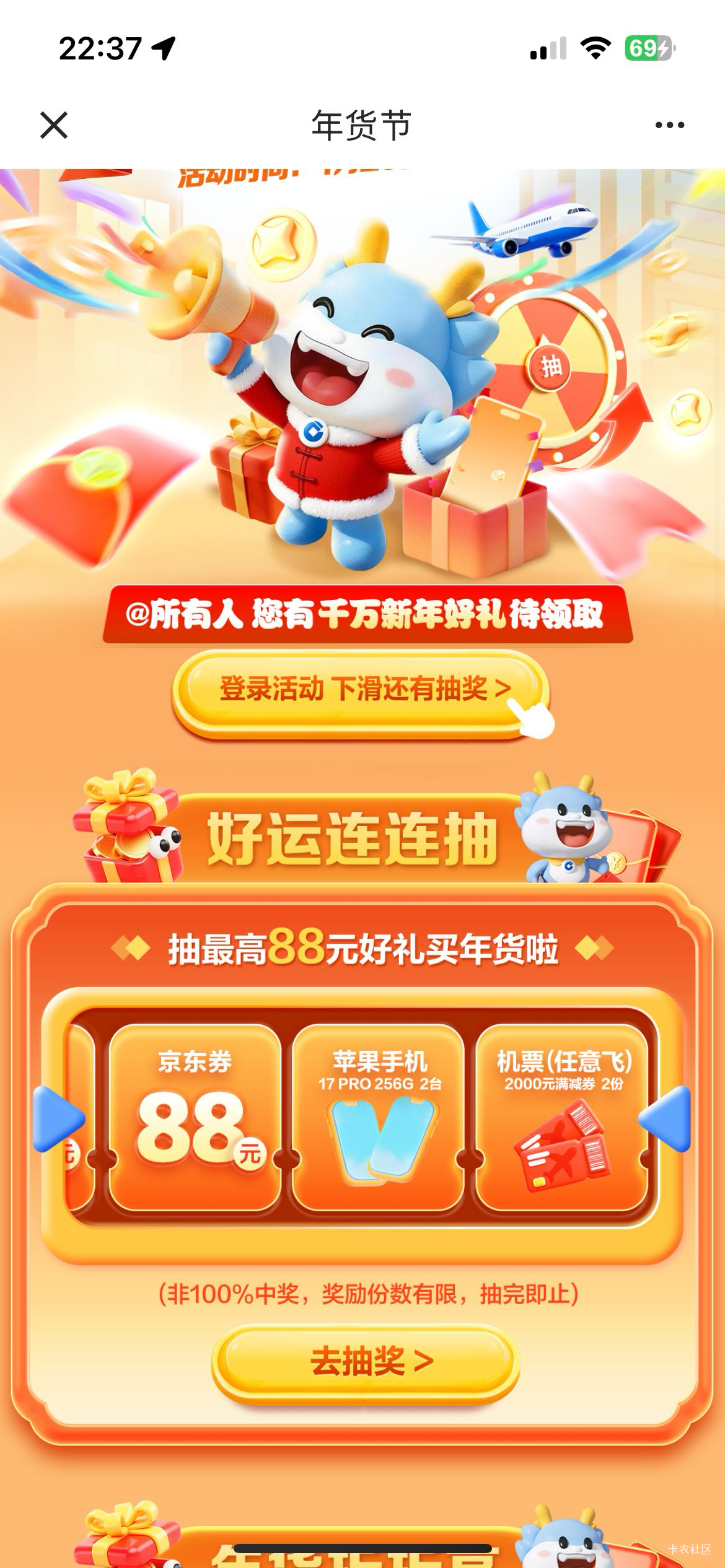 不知道是不是全国,我是深圳建行,底下生活,往下翻本地,年货节,两次抽奖机会,只能中一次,不大概率中,中了5京东券,建行生活app买直充ek可用!