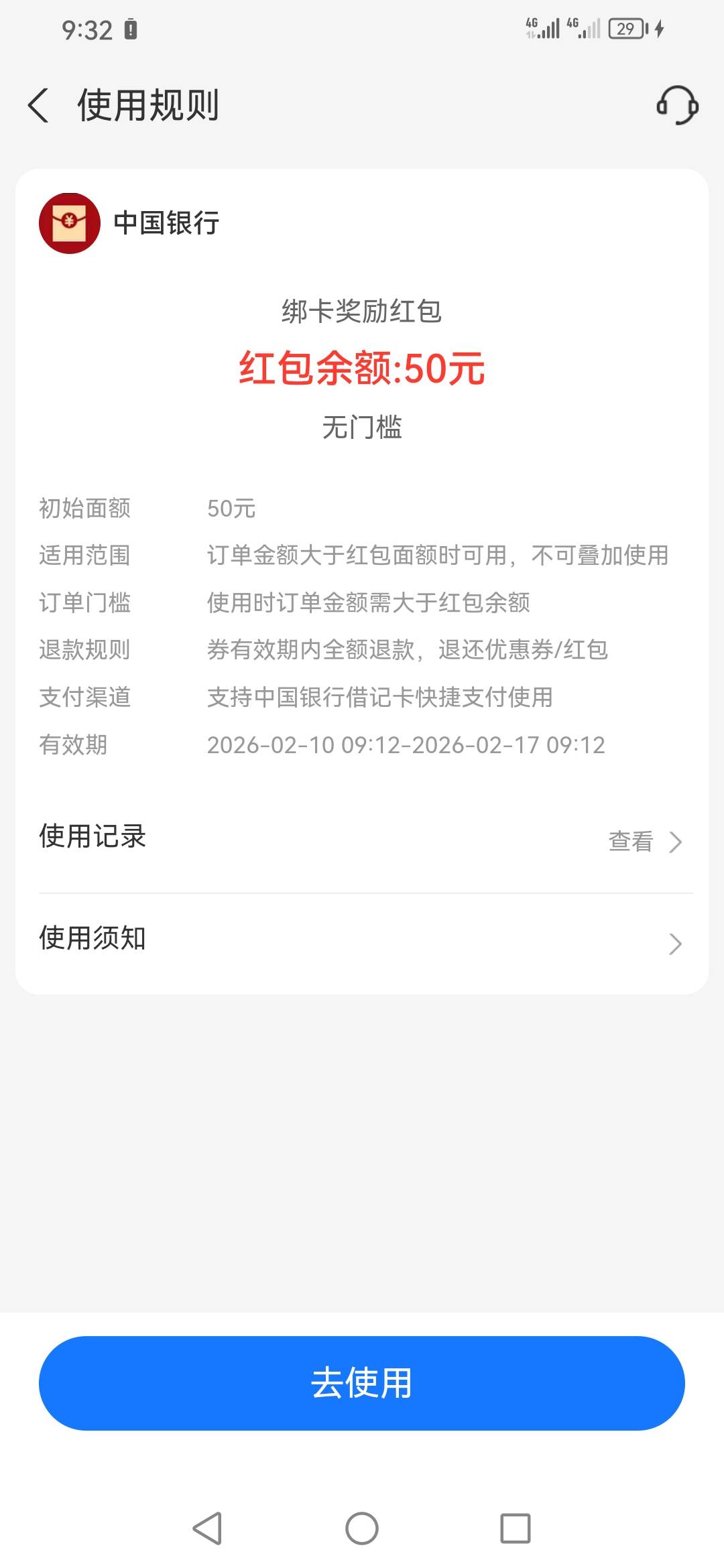 东鹏特饮 发表于 2026-02-10 10:35 支付宝首页卡包里面 买东西用支付宝付款超过50.01的金额就会弹出来使用中国YHK支付立减50 小店扫码都可以