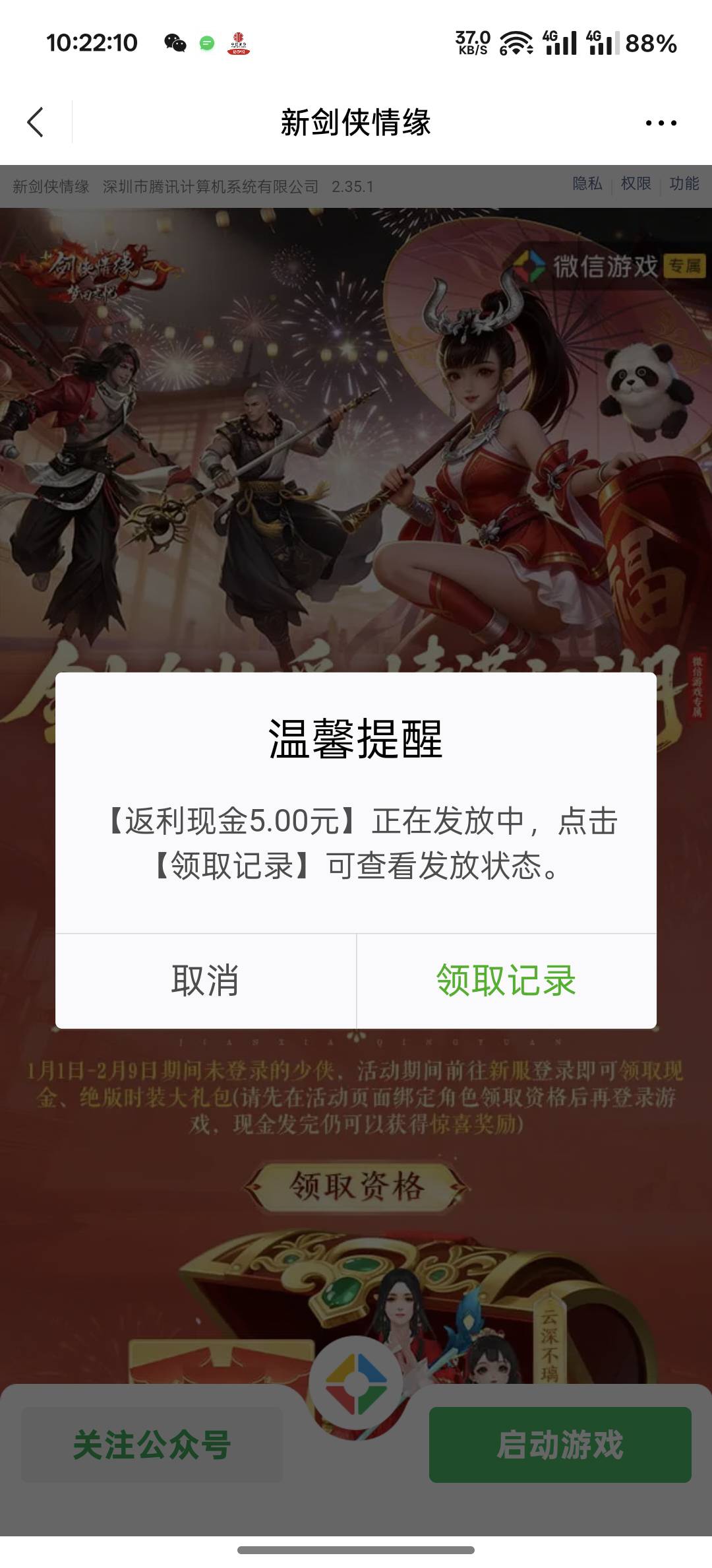 腾讯游戏新剑侠情缘微信游戏专属活动
