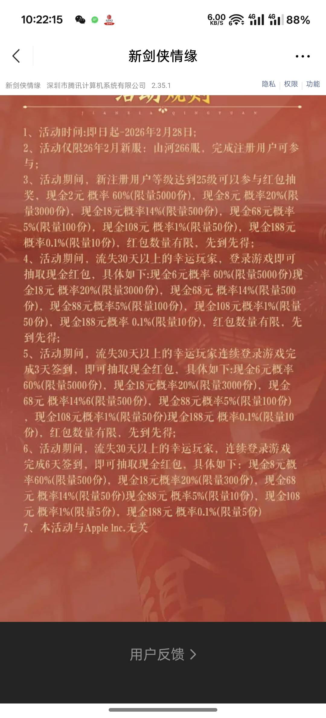 剑侠情缘回归和充值有 266区建角色,搞块 https://game.weixin.qq.com/cgi-bin/actnew/newportalact/234532/RlU3thjK2NbgJxlAO2P-Yl5aTO4PpPjQo2rX7sAMj4E/main_page2