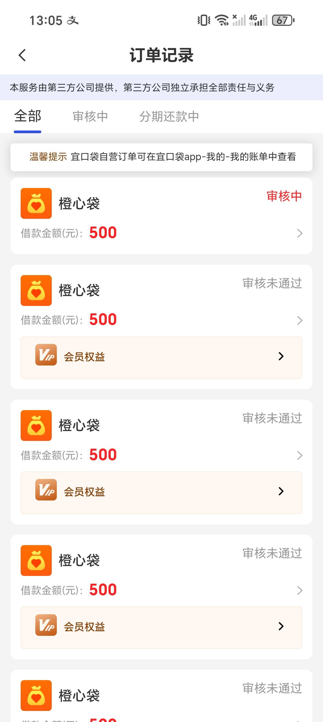 橙心贷八号申请的今天上午十点多到了 宜口袋商城还款日没看到几分钟就给扣了200多和会员费