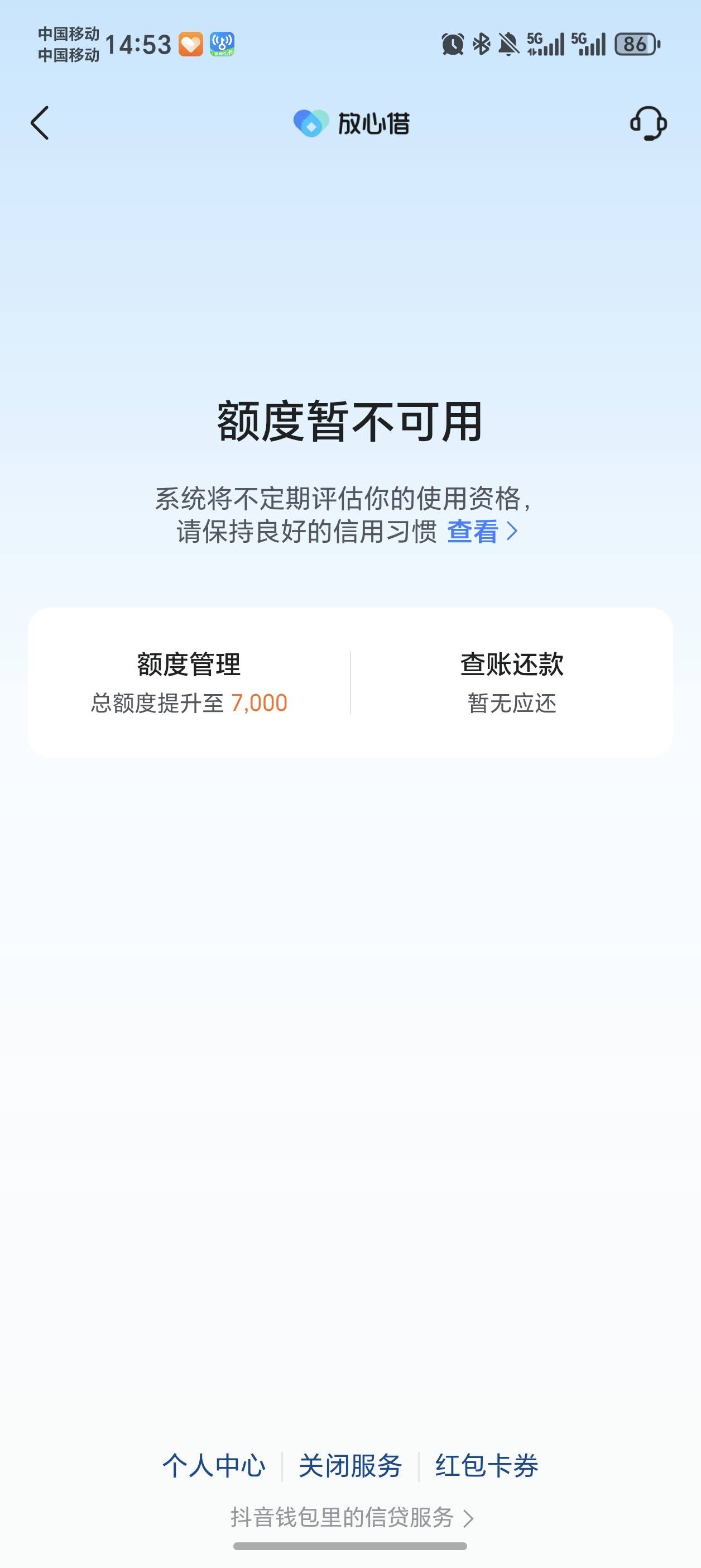 放心7000借不出来。