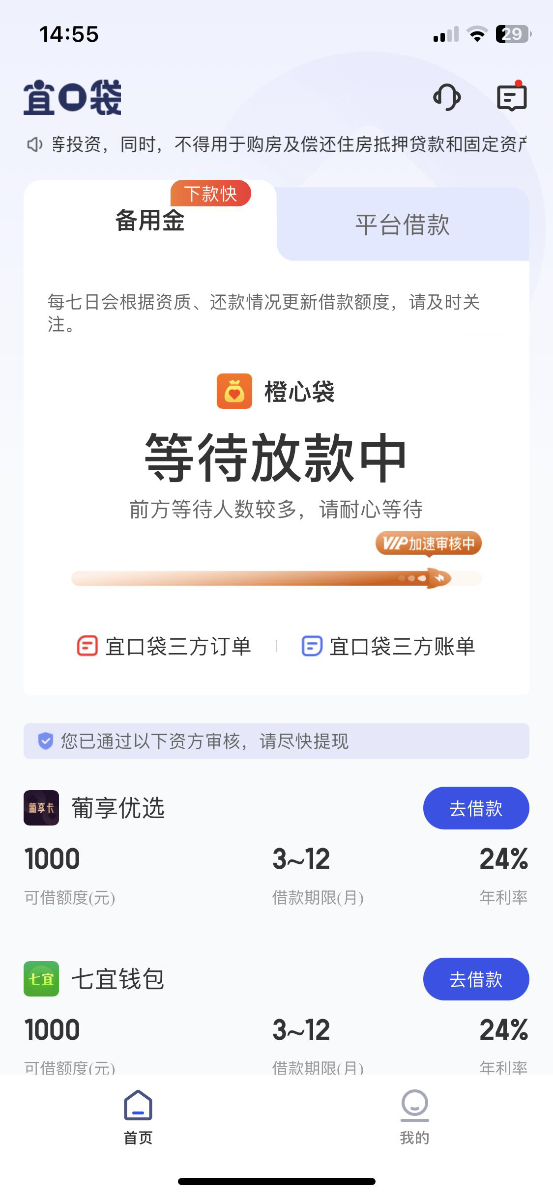 下面这两个是宜口袋额度用完以后人人都给入口是吧,之前一直没有入口,刚刚把宜口袋额度用完以后就出来了,看了一下帖子基本没人下款啊