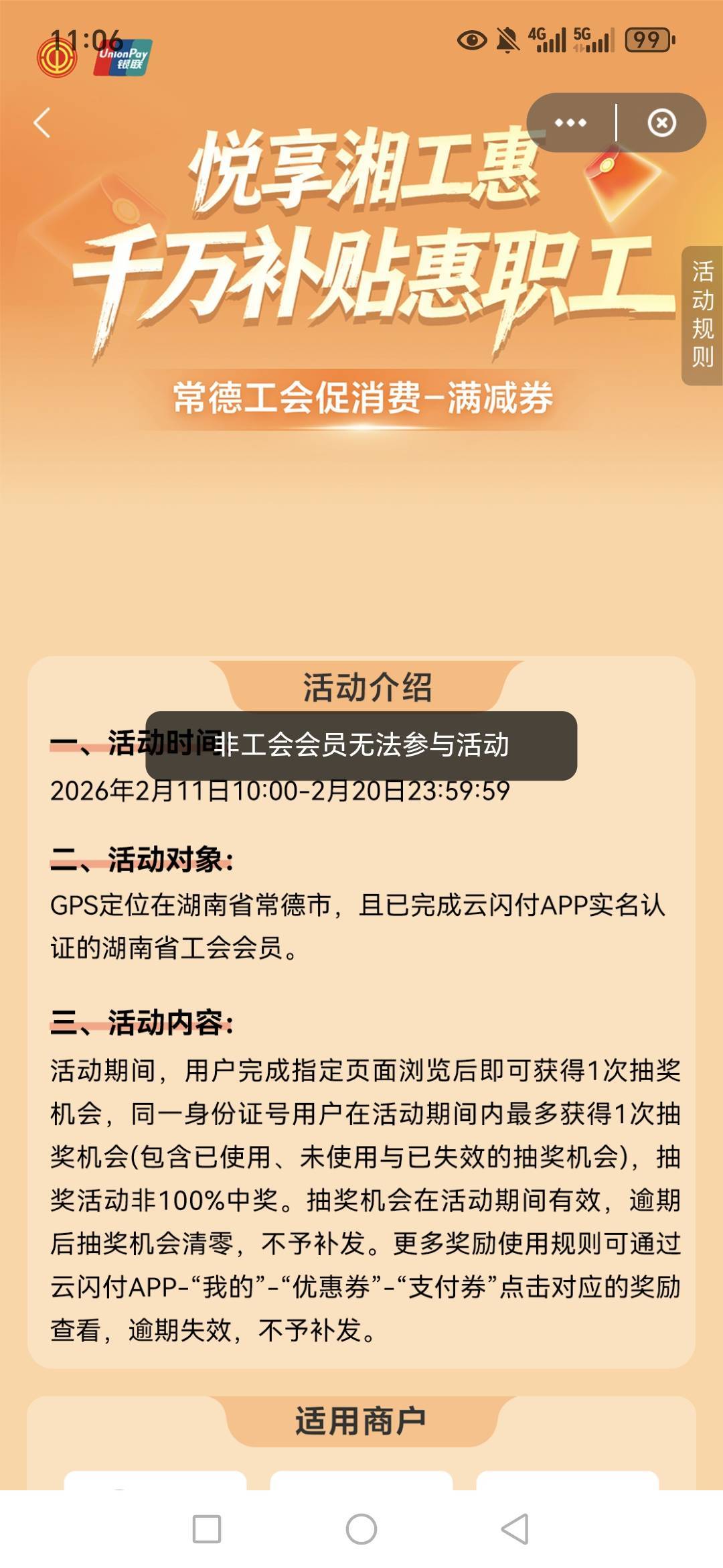 云闪付湘工惠常德抽奖活动