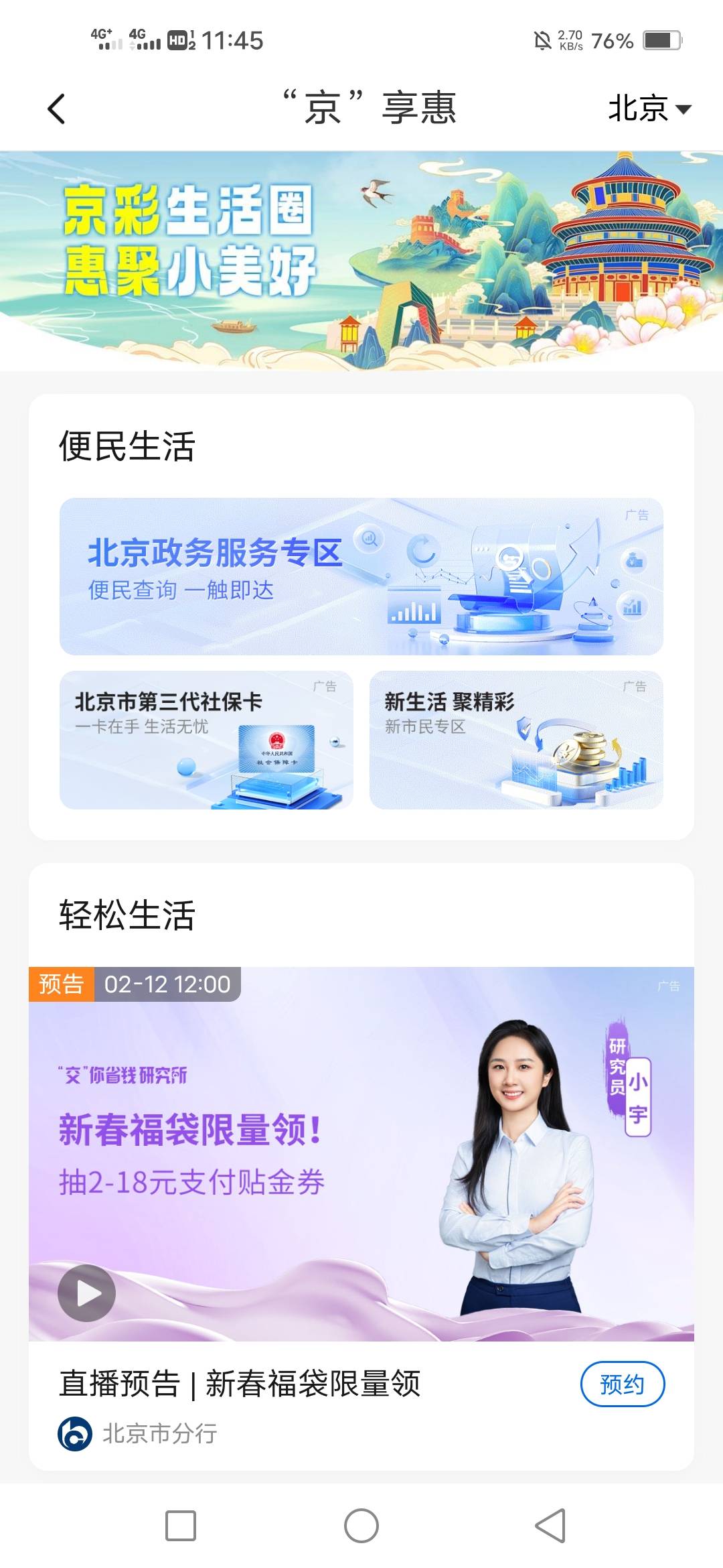 交通银行北京看直播间抽限时福袋活动