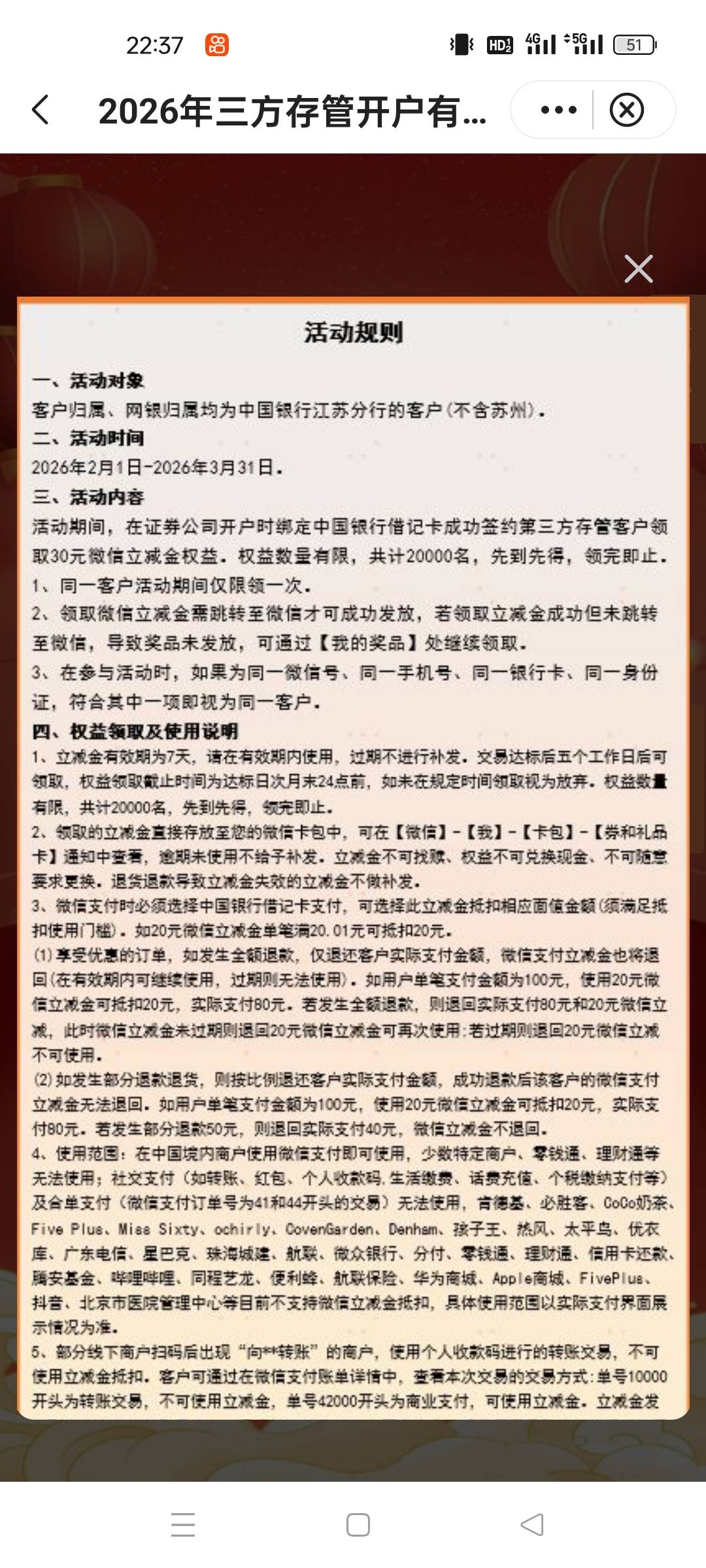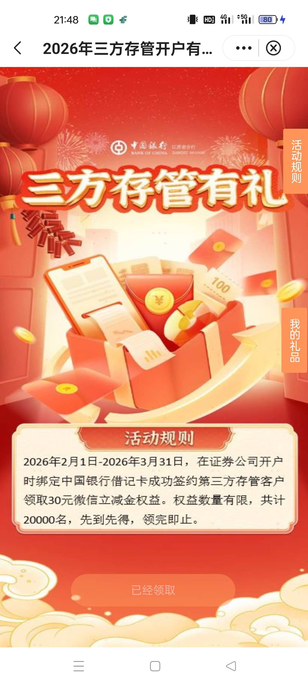 中行江苏三方存管开户有礼活动