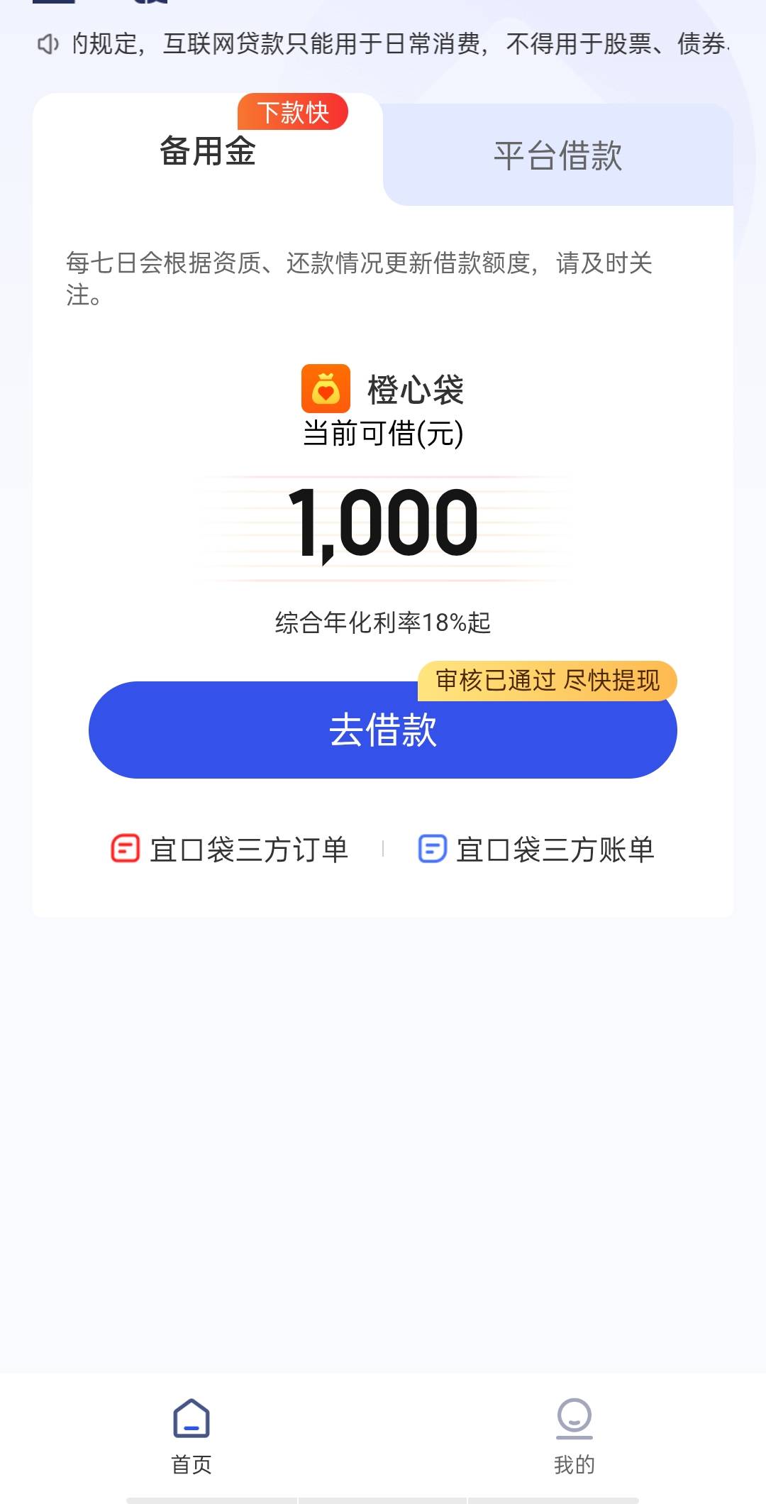 宜口袋,我的这么是这样的,你们还显示平台备用金啥的