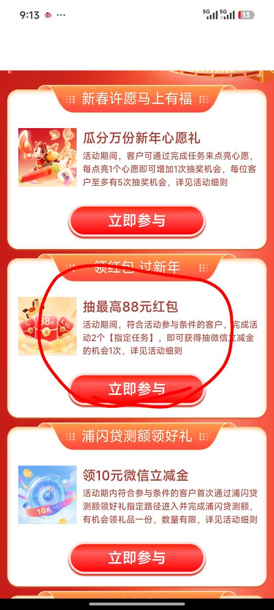 浦发银行迎春接福领红包过新年活动