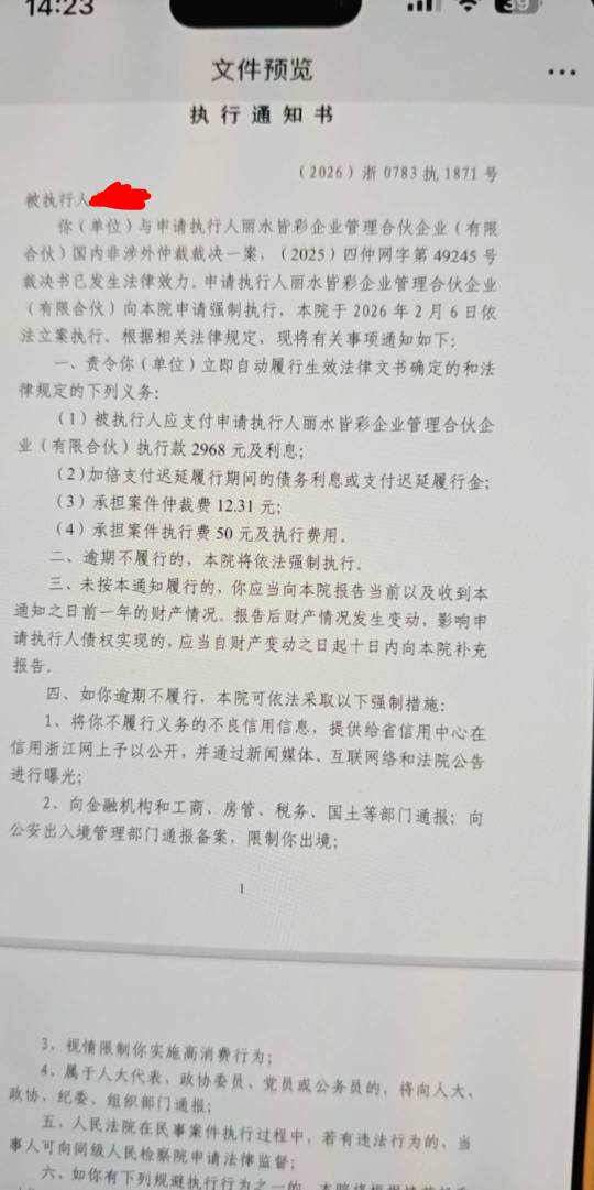 家住海边就爱浪 发表于 2026-02-13 14:39 奇怪呀,直接就能直接执行吗。也没人联系我 谁家都不清楚