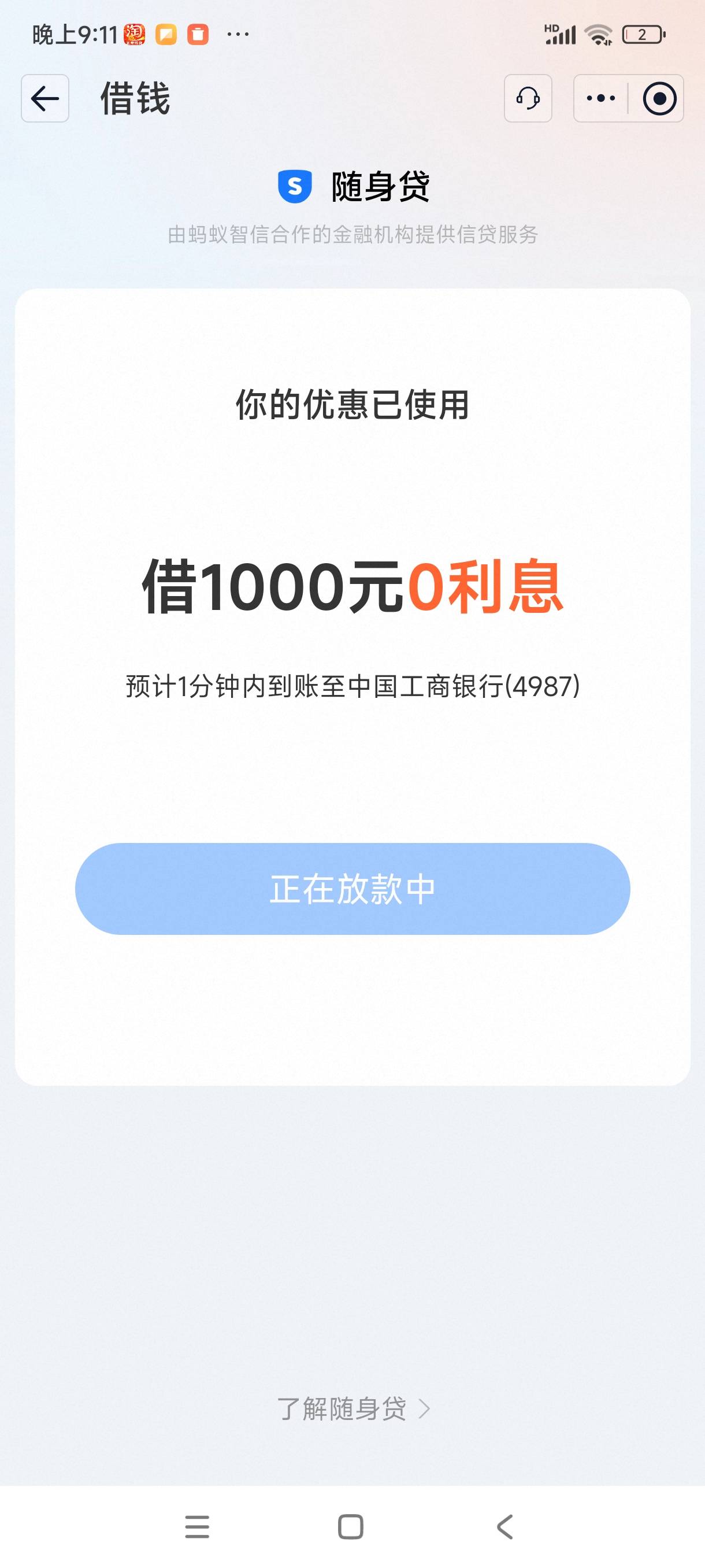 你妹吃鸡 发表于 2026-02-13 21:46 我的扫完放款中,没到5分钟拒了,我还等到账赶紧转走花呢