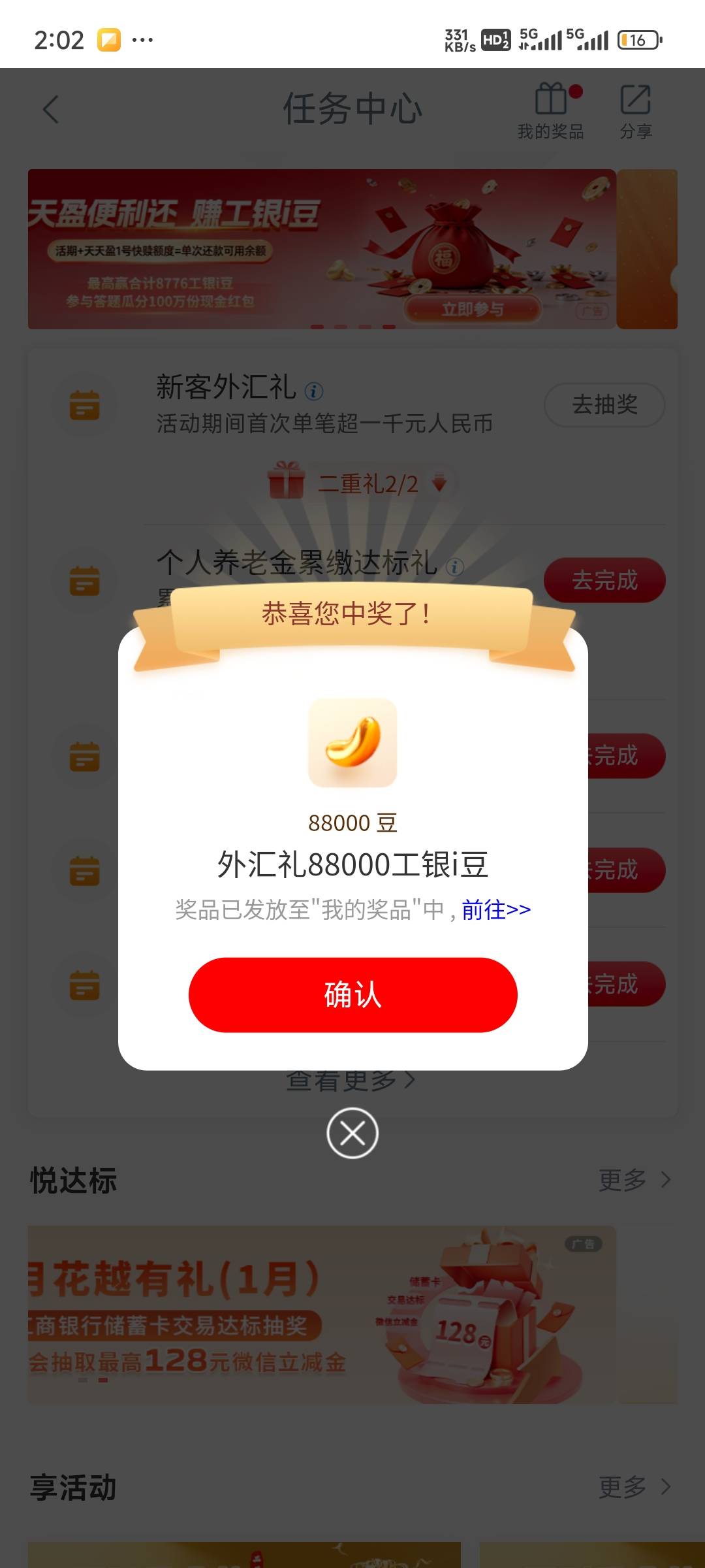 工行任务中心新客外汇礼抽奖活动