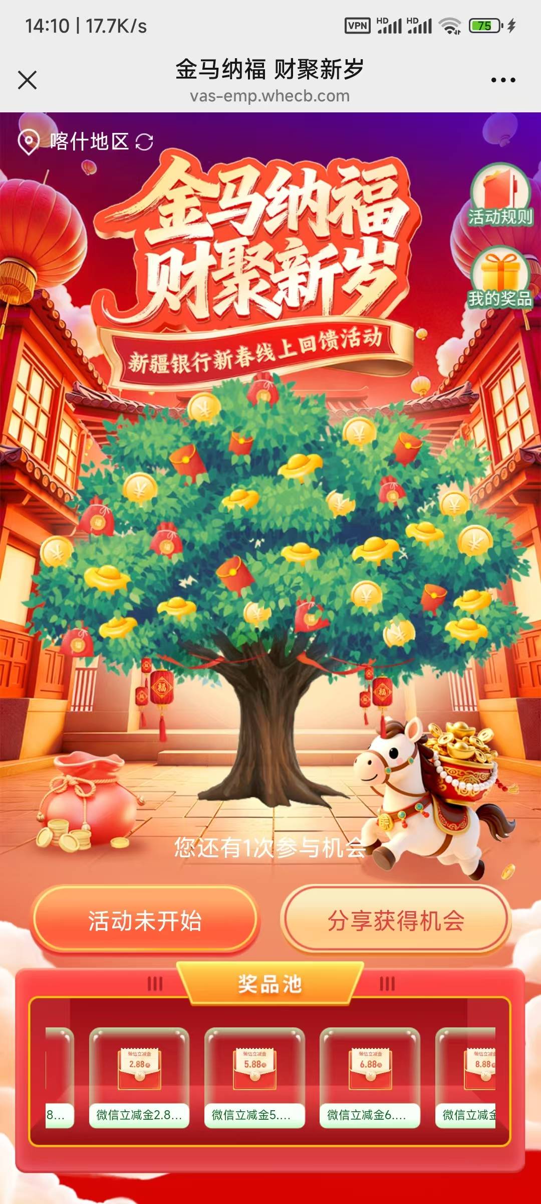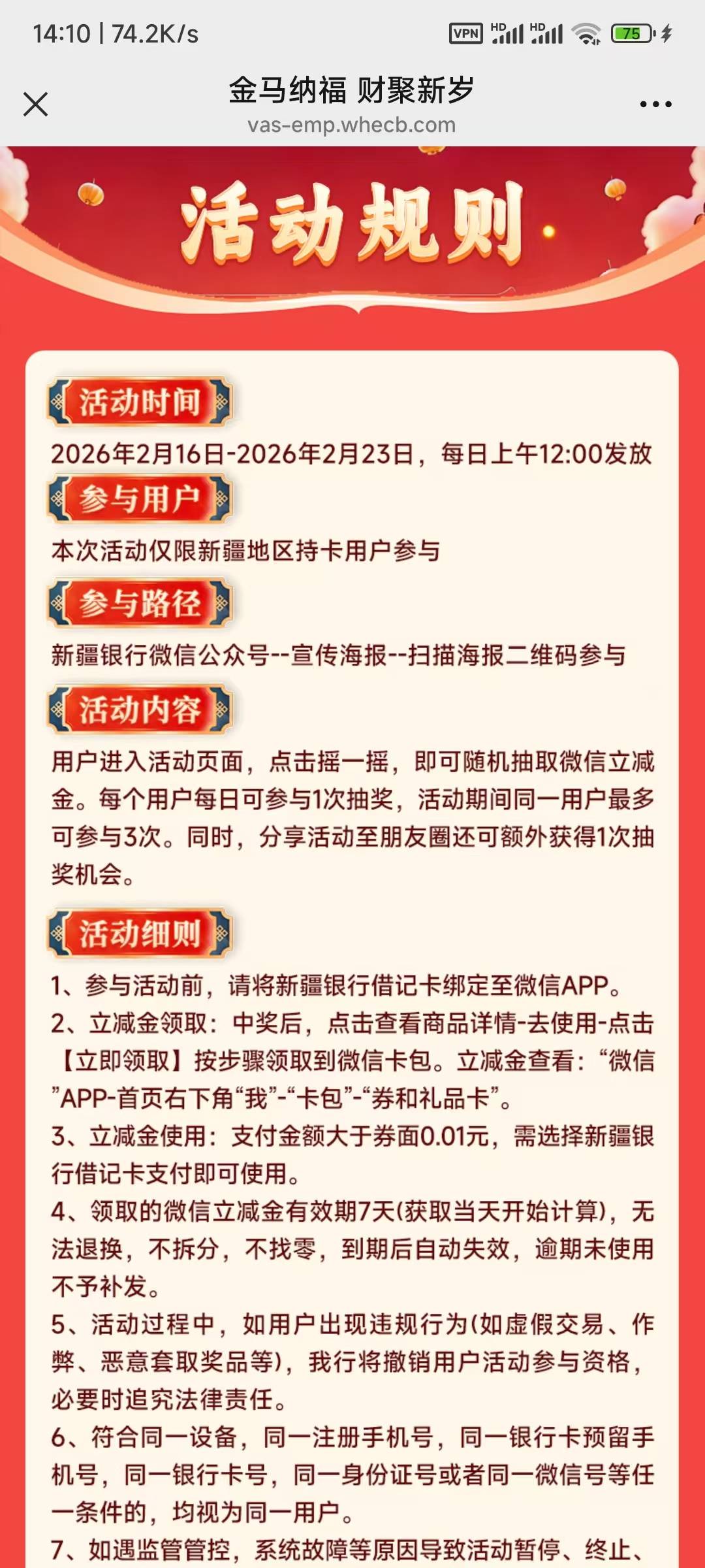 新疆银行金马纳福财聚新岁新春线上回馈活动