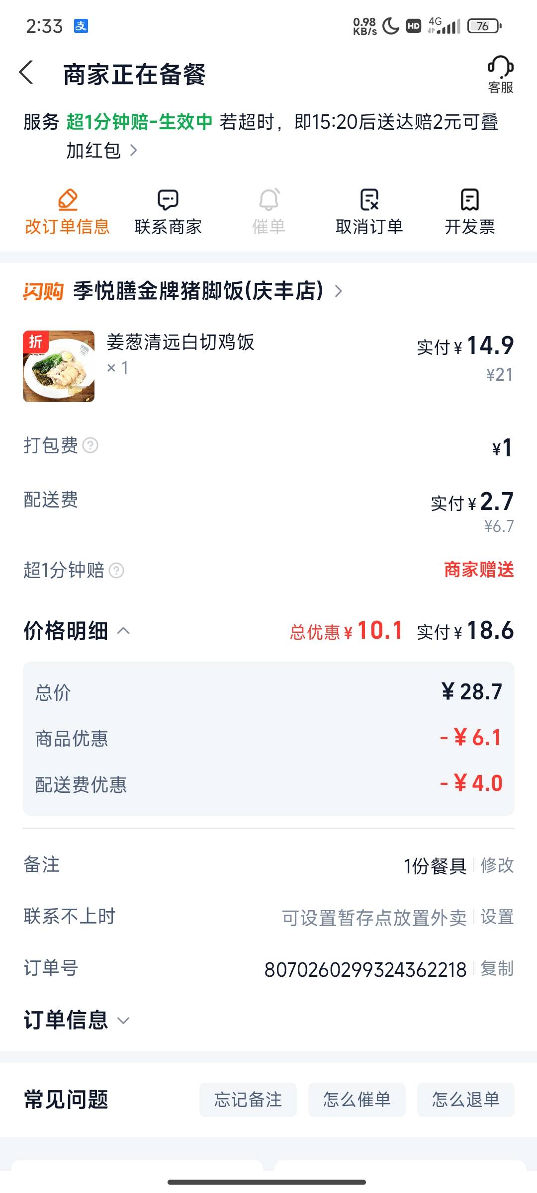 老哥们,过年了外卖好贵啊,平时14的,今天要18!!