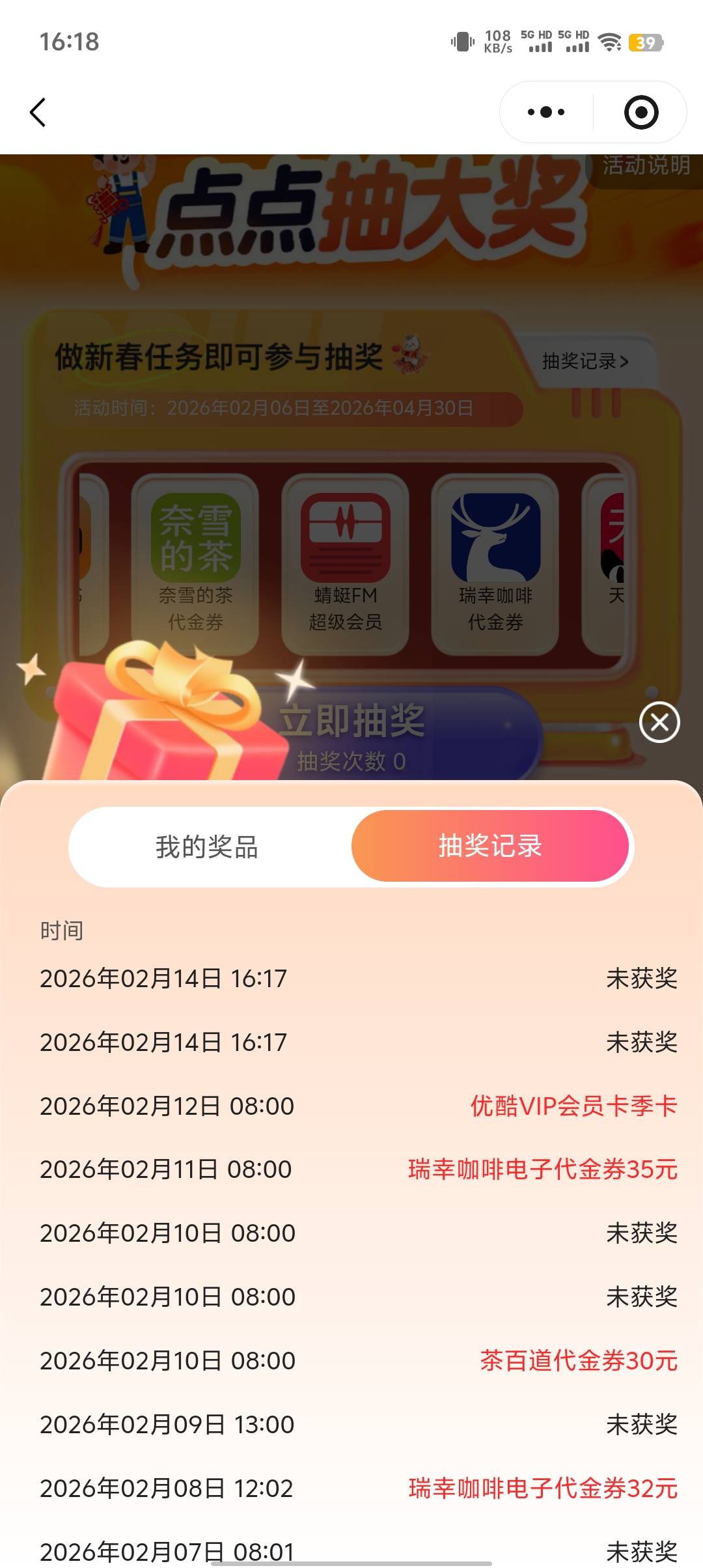 你已经中了很多奖品了,我抽这么多天还没有你的多