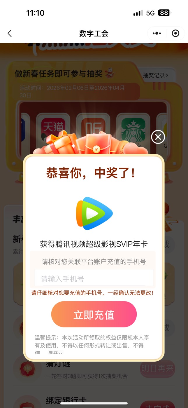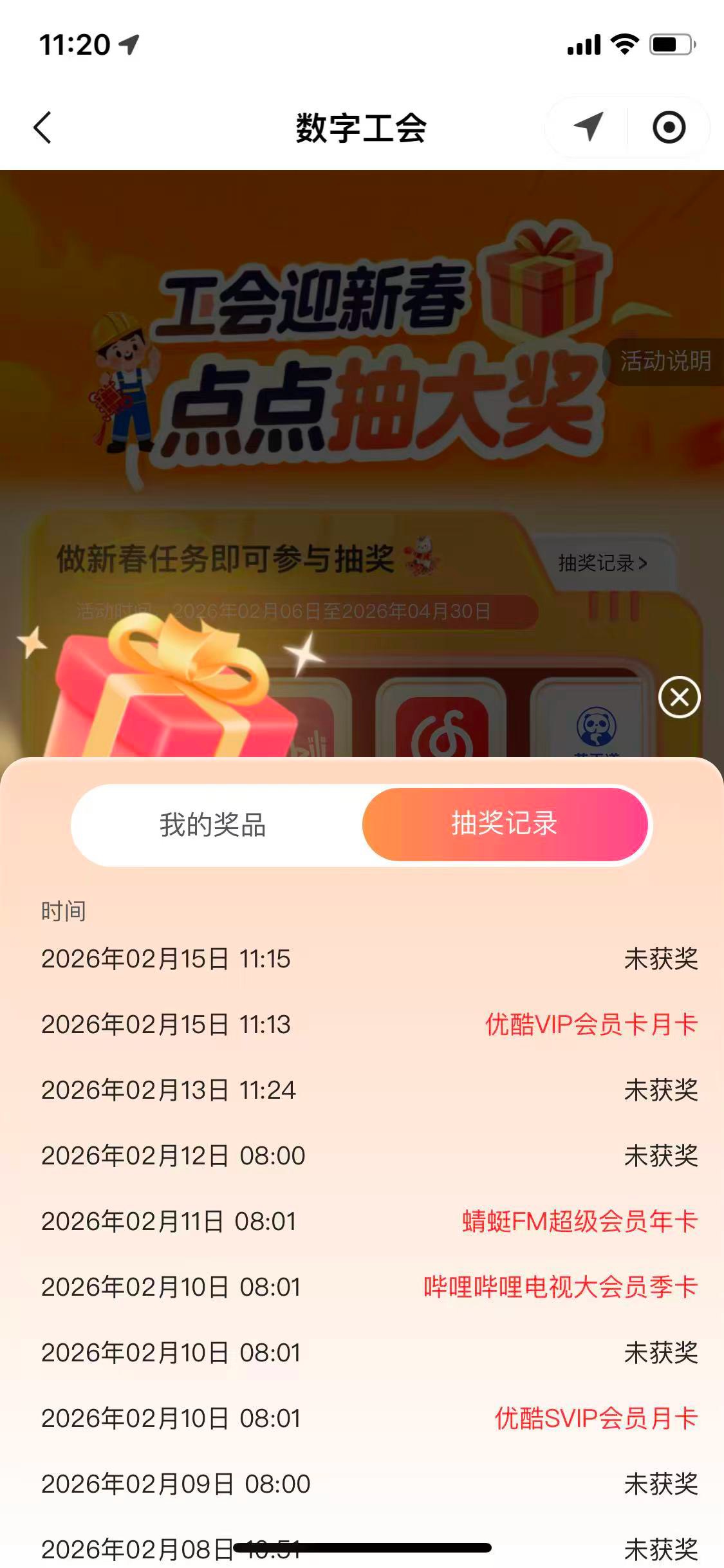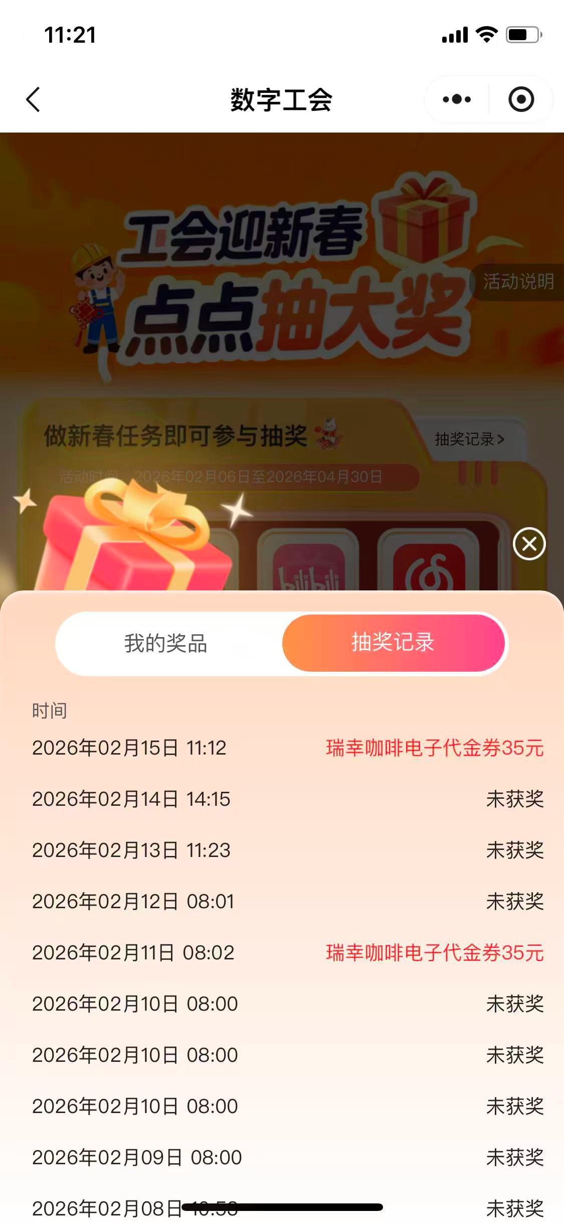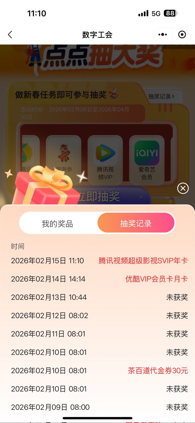 浙江数字工会小程序迎新春点点抽大奖活动