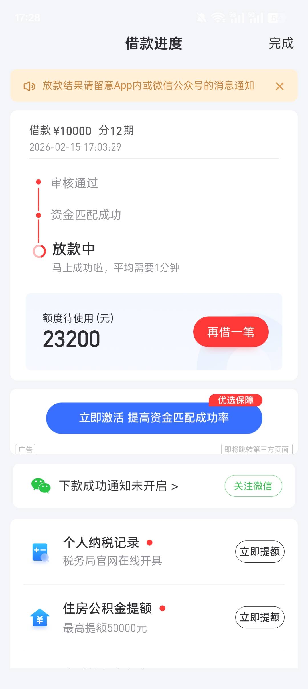 不知道能不能碰瓷成功,上个月的第一笔10分钟就下了,第二笔直接一个月后再试。这次出黑屋申请第二笔没有秒拒显示放款中。