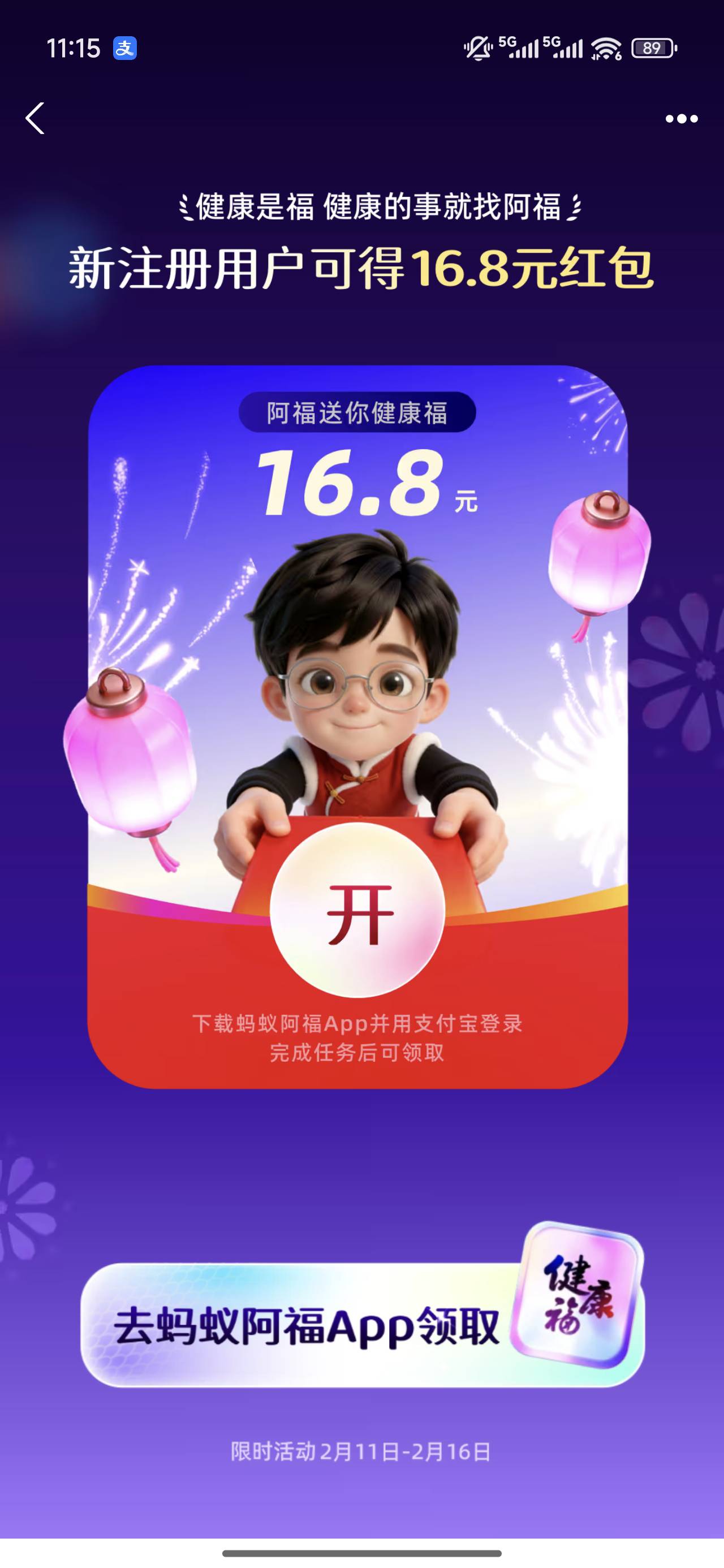 支付宝下载蚂蚁阿福app领健康福活动