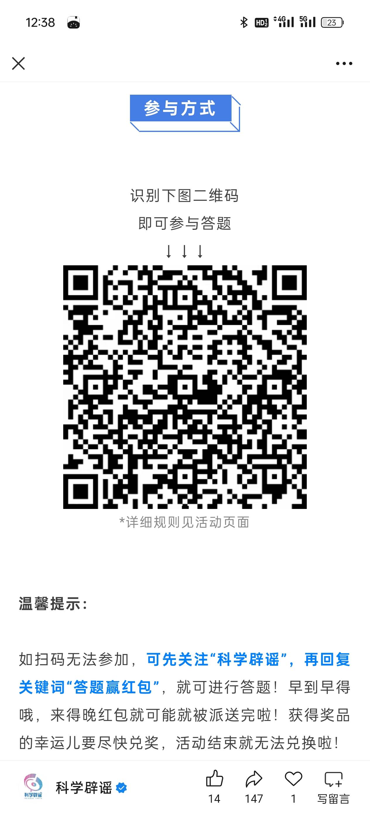 科学辟谣答题抽红包全选错