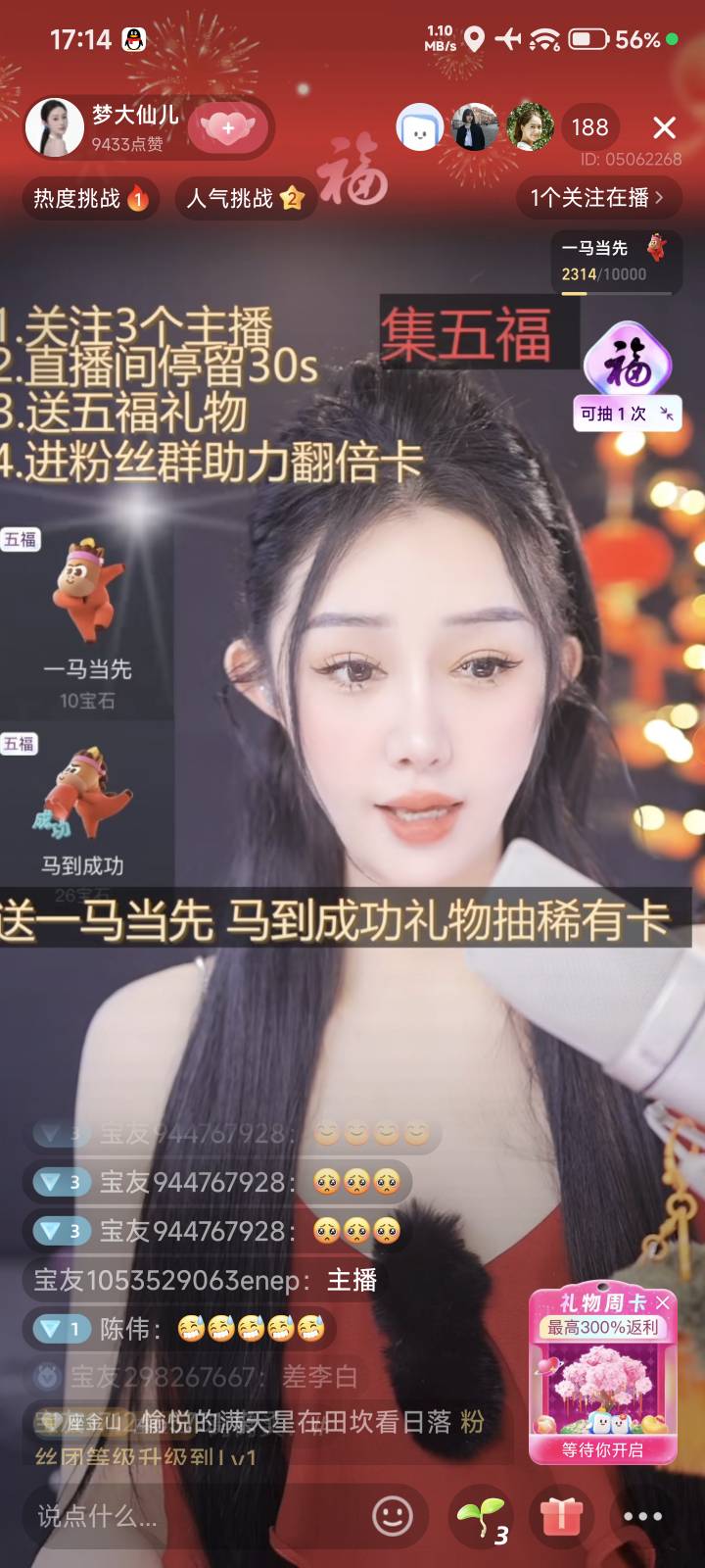 棉花糖y 发表于 2026-02-16 17:13 直播间送礼物概率得自测我刚刚出的送那个一马当先中的