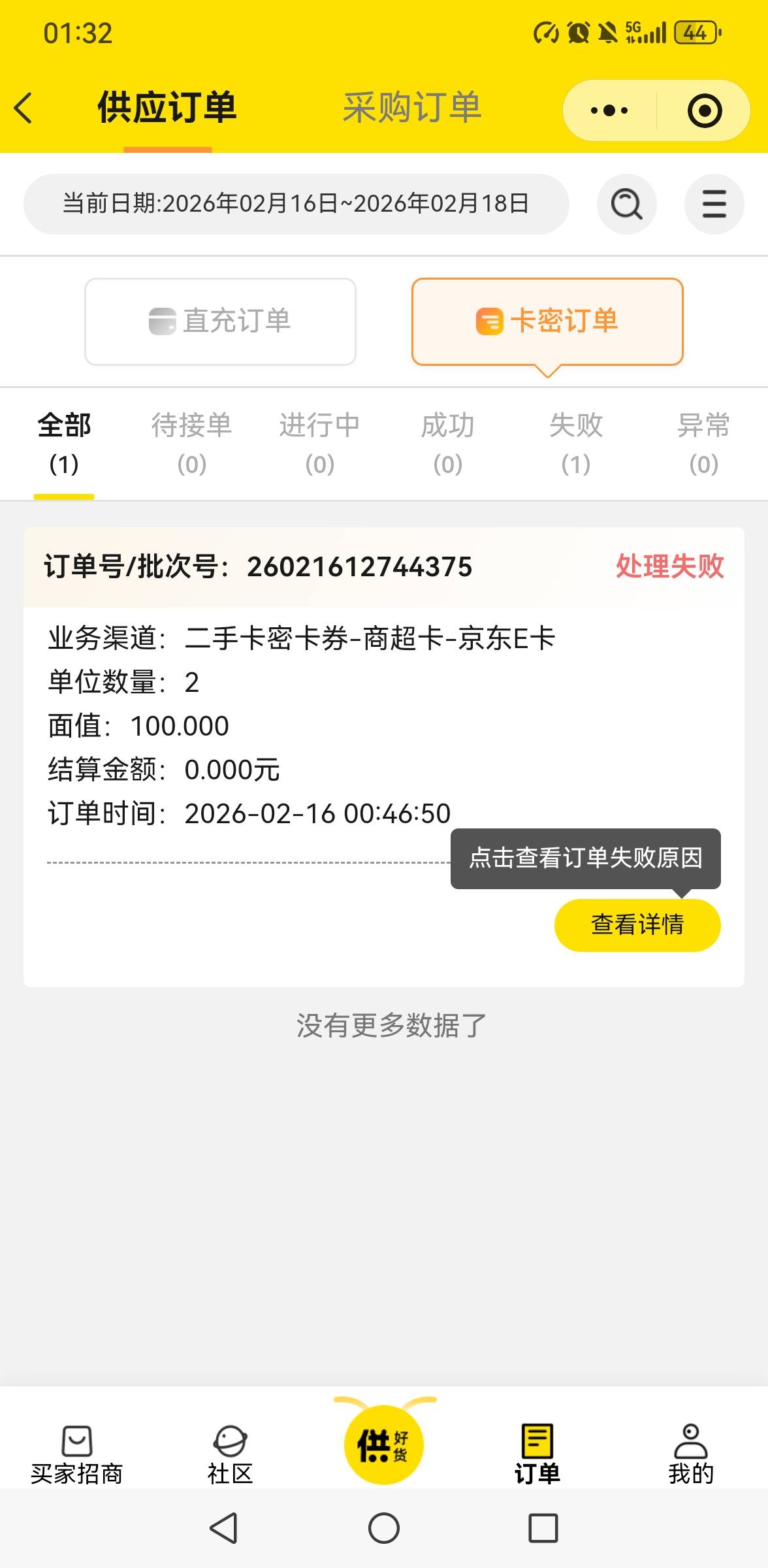 不知道凌晨卖的时候没有秒,我就没管了,现在看是处理失败,还备注未激活,我立马去京东看被绑定了