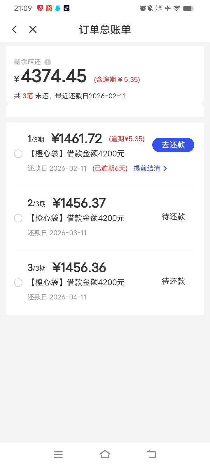 你这1期的还款都快1500了,1500也没用啊估计秒扣剩个20来块