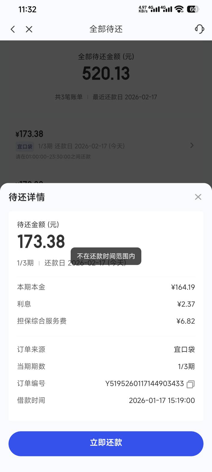 那里不是写着请在1:00:00-23:30:00之间还款