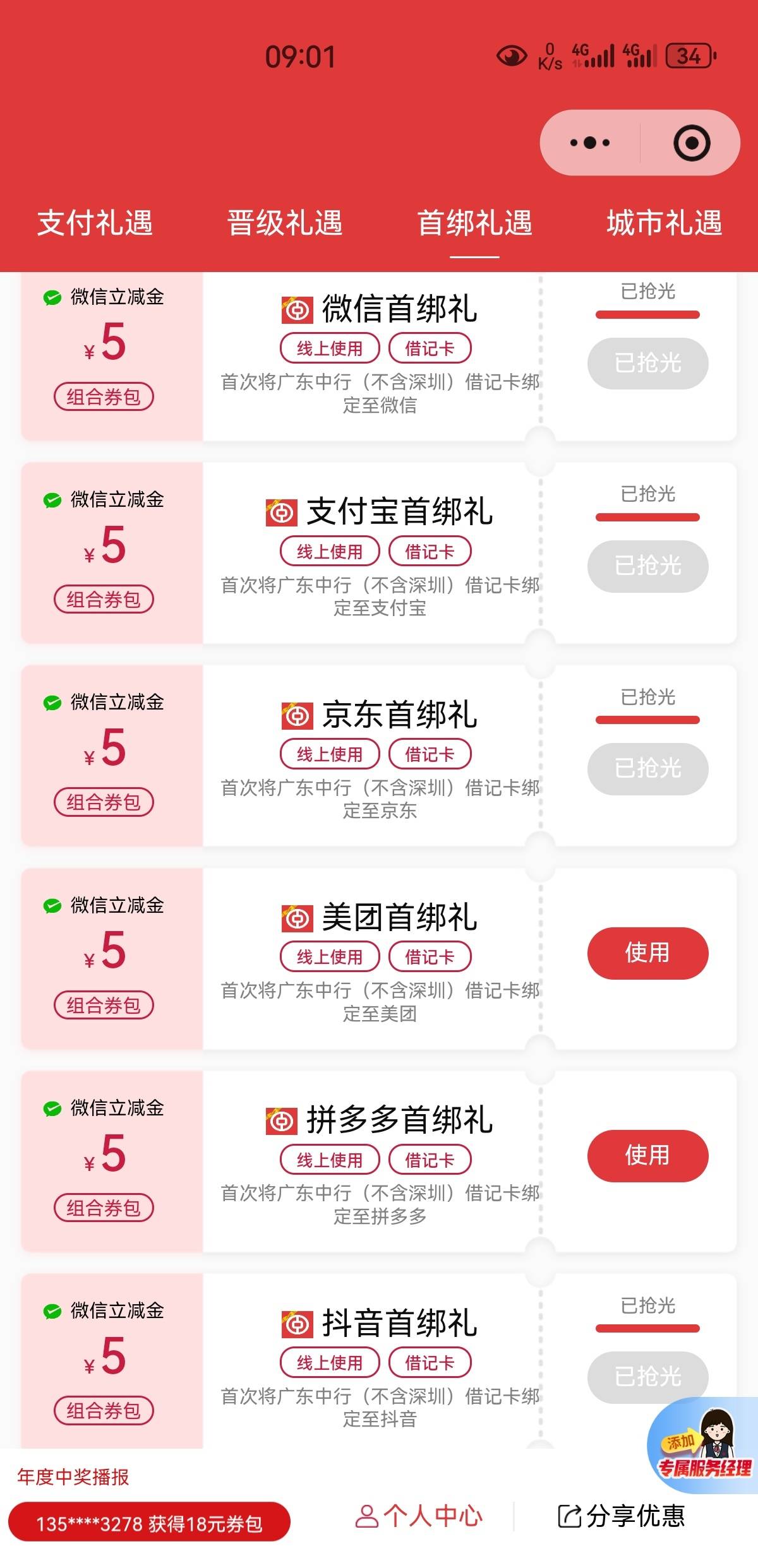 广东中行尊享有礼小程序首绑礼遇活动