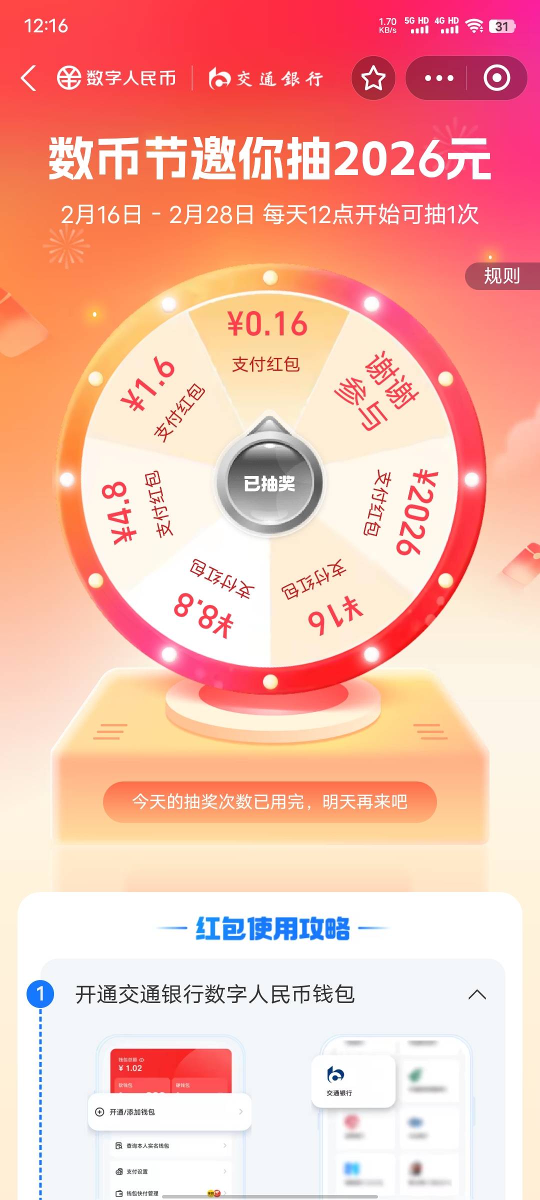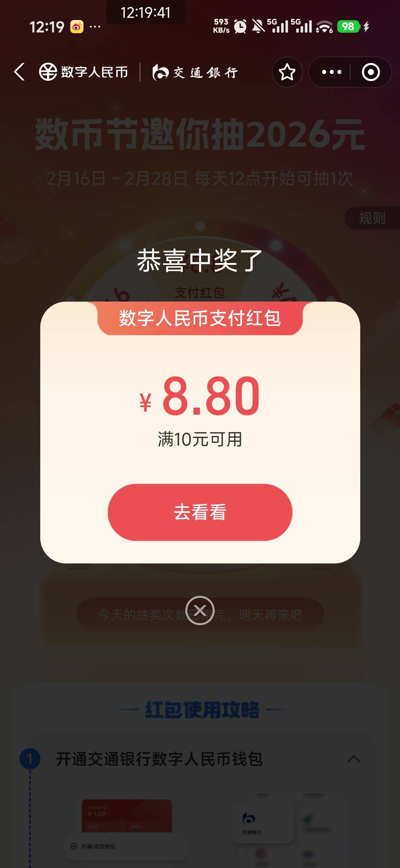 都忘了数字人民币抽奖,这两天也没人发