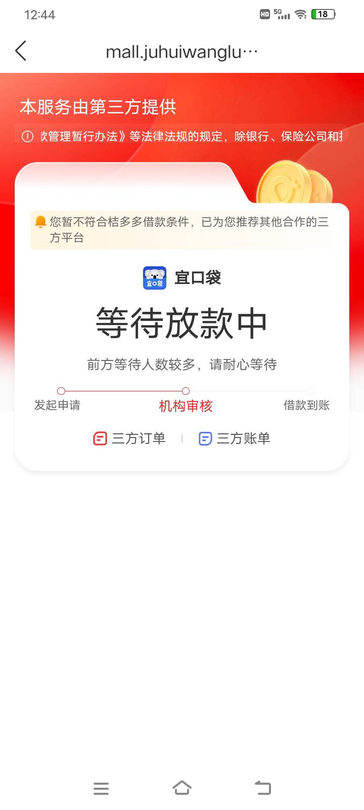 刚申请就来短信放款失败,页面一直显示放款中