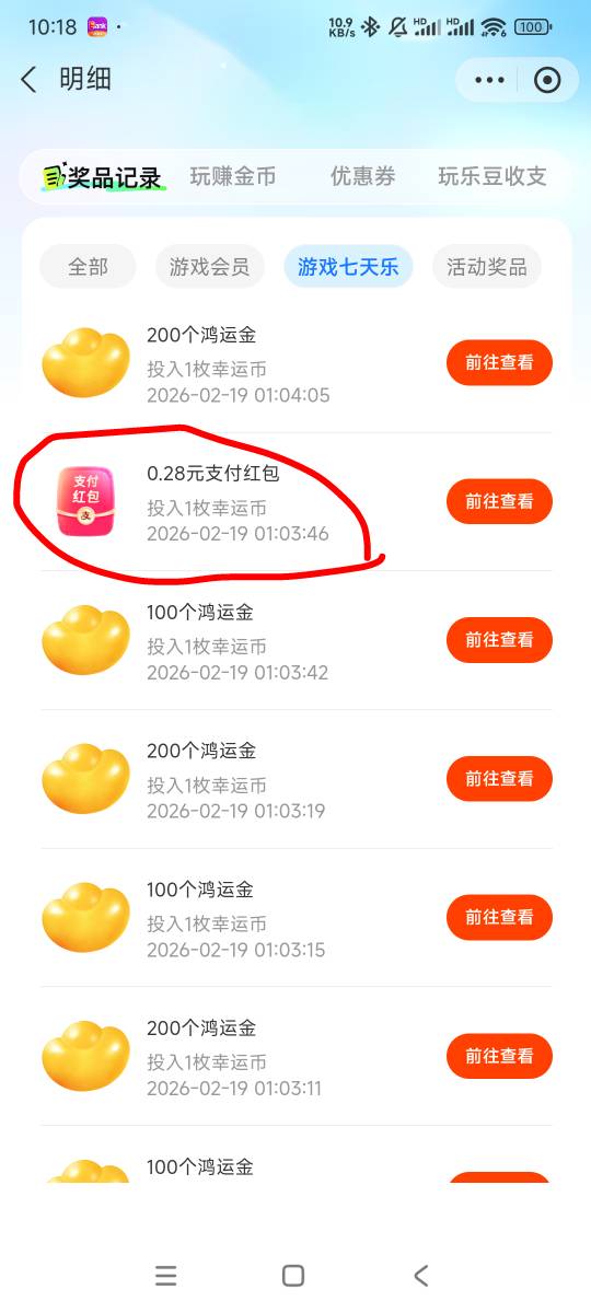 蜡笔小薪 发表于 2026-02-19 10:17 用玩游戏给的游戏币,抽游戏币保底,大概率中红包和实物,红包是8/18/88档位