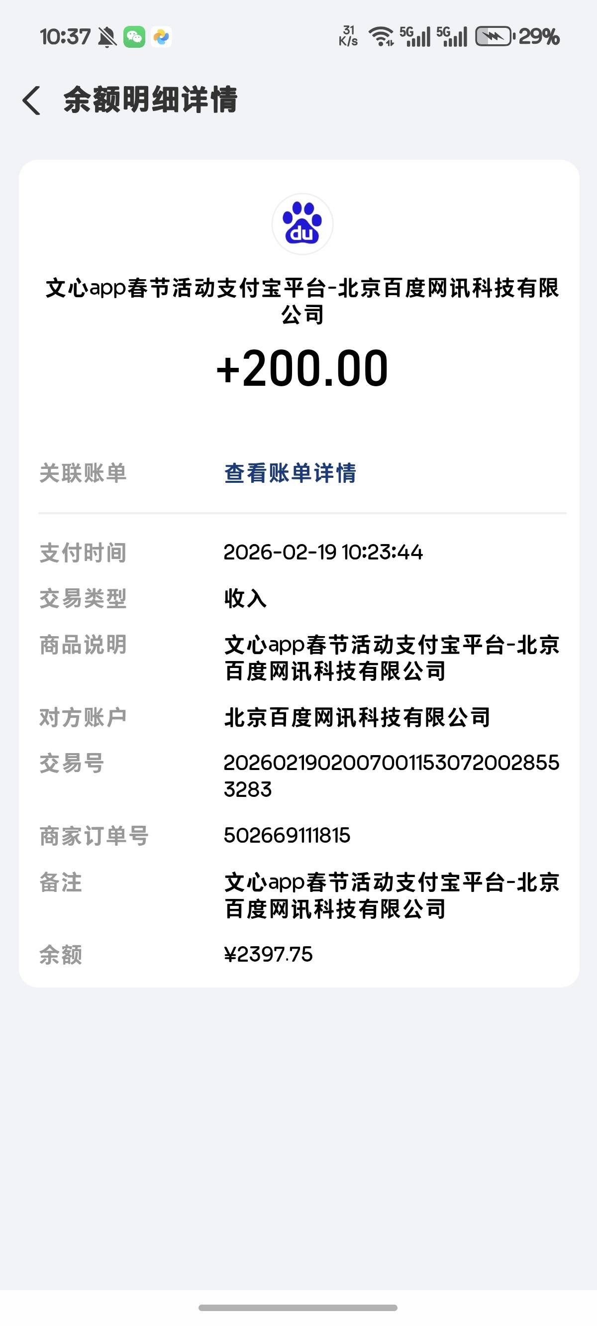 问心持续到账,