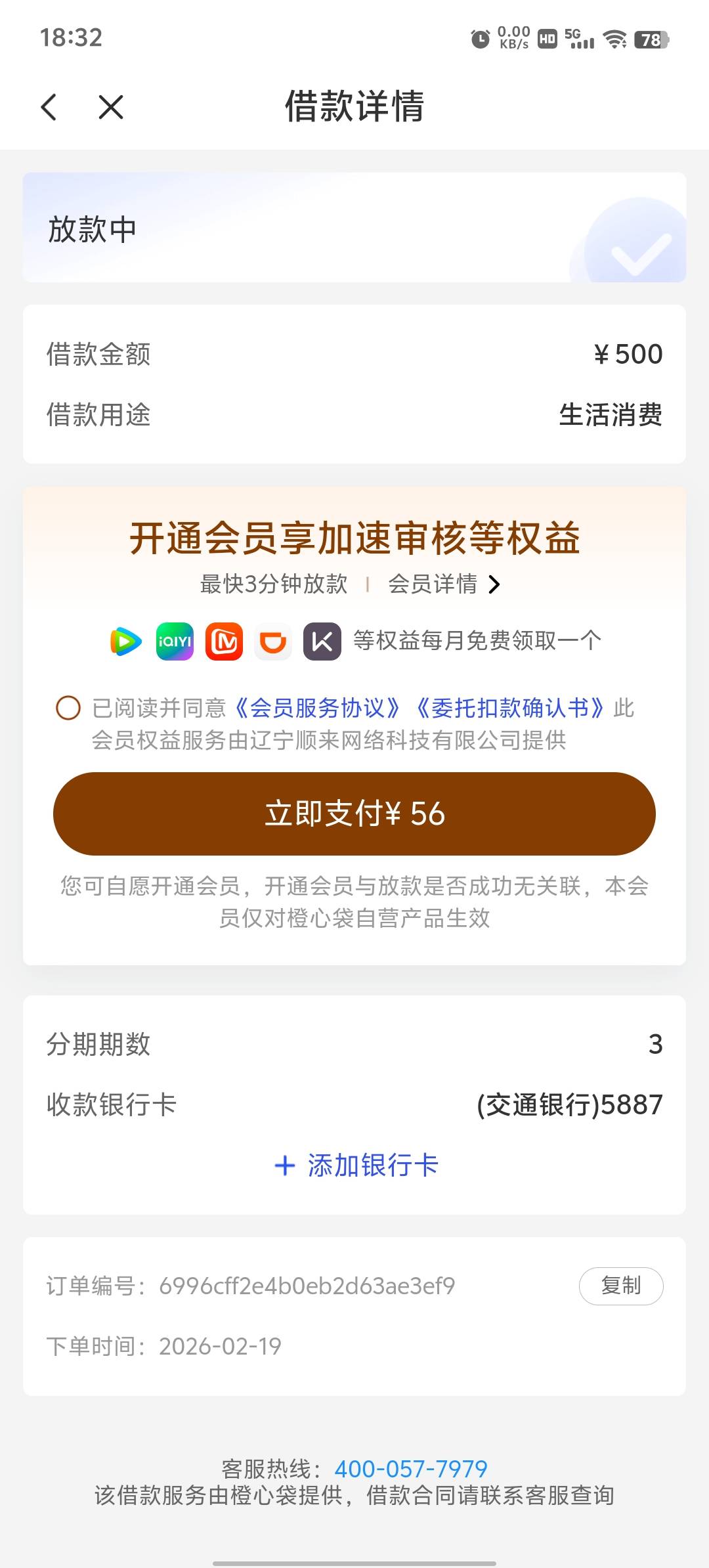 这种情况开了会员会不会下款啊?界面一直显示放款中